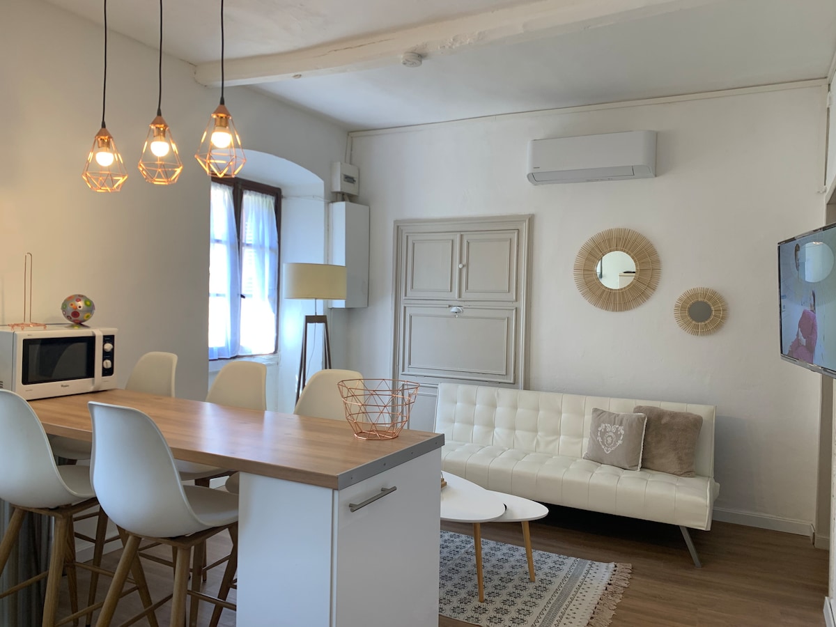 Découvrez ce joli appartement vue sur mer en duplex de 50 m², entièrement rénové en 2025, idéalement situé à seulement 5 minutes à pied du cœur de la ville, du port, de la gare et des plages. Parfait pour un séjour à deux, ce logement tout confort vous accueille dans un cadre moderne, chaleureux et entièrement équipé : cuisine neuve, literie de qualité, climatisation, wifi… tout est pensé pour votre bien-être. Profitez de la douceur de vivre dans un appartement aussi pratique que raffiné.