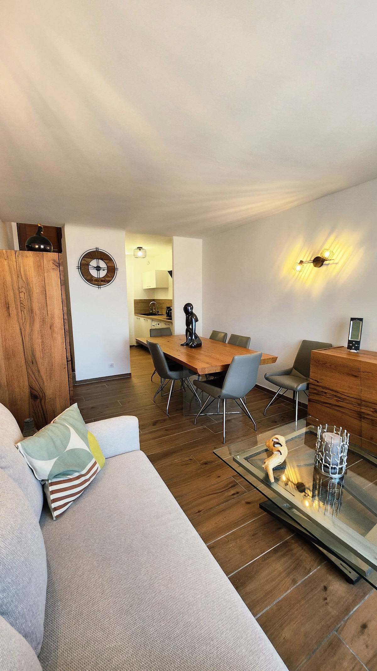 Magnifique appartement de 60 m2 totalement rénové et climatisé. Vous ne manquerez pas de confort dans ce t2 aux grands volumes, avec un second couchage véritable canapé-lit avec matelas confortable en 140cm. L'emplacement est exceptionnel : au pied de la place d'ile-rousse. Garez-vous et profitez de tous les charmes de la ville à pied que cela soit plage(130m), restaurants, glacier, bars, supermarchés, jeux pour enfants, départ bateaux et jet ski, randonnées ...