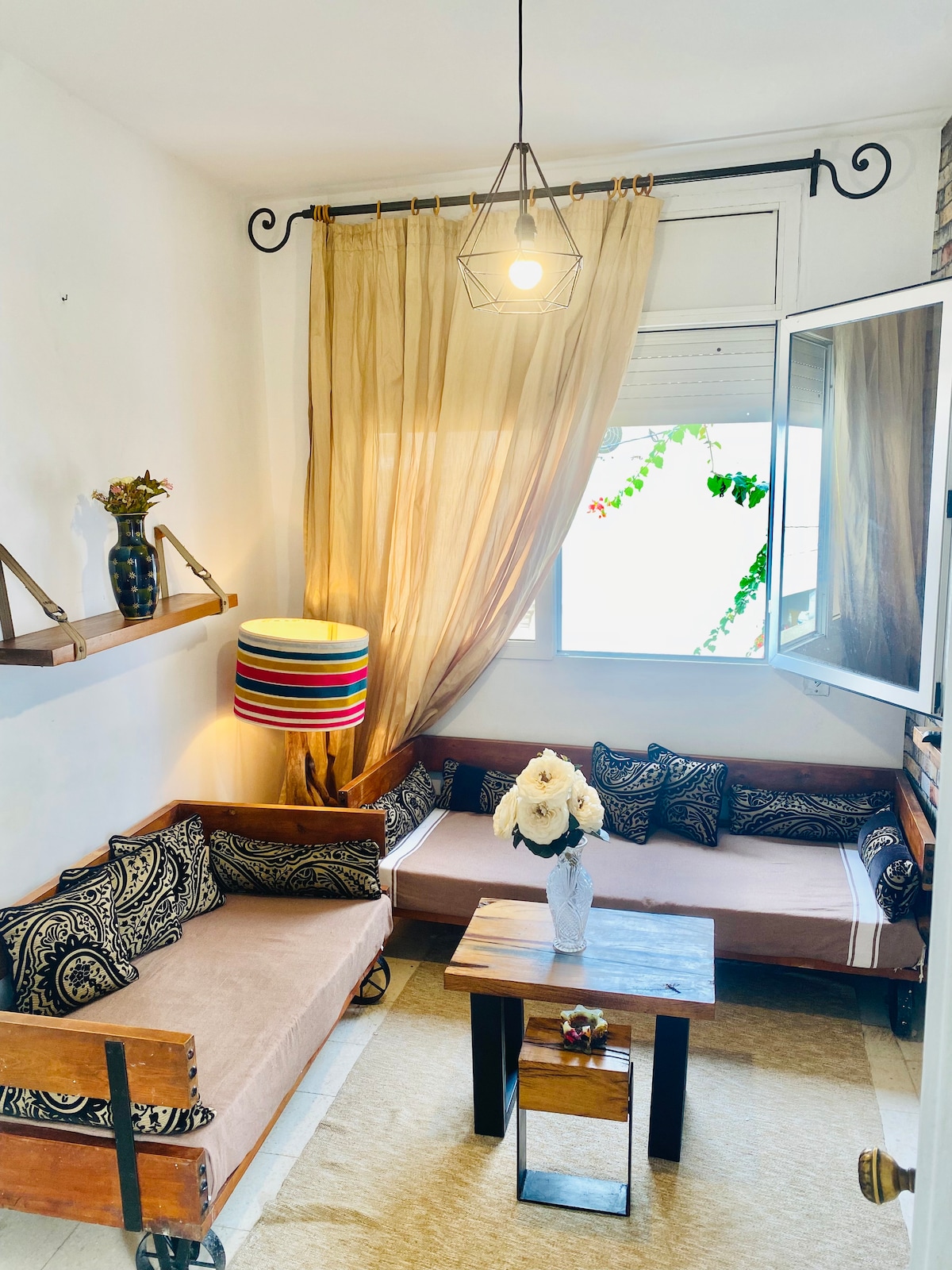 Appartement au cœur de Sidi Bousaid, joyeux, lumineux et confortable. situé à 5mn à pied de la gare du train dans un quartier résidentiel sécurisé à côté de toutes les commodités, épicerie, prunier, pharmacie. Tous les lieux d'intérêt de renommé de Sidi Bou Said, musée, monuments, café des délices, Café des nattes, restaurants,... sont visitables à pied. l'appartement est richement équipé, dispose d'une décoration authentique et typique réalisée par des artistes et materiaux 100%Tunisiens