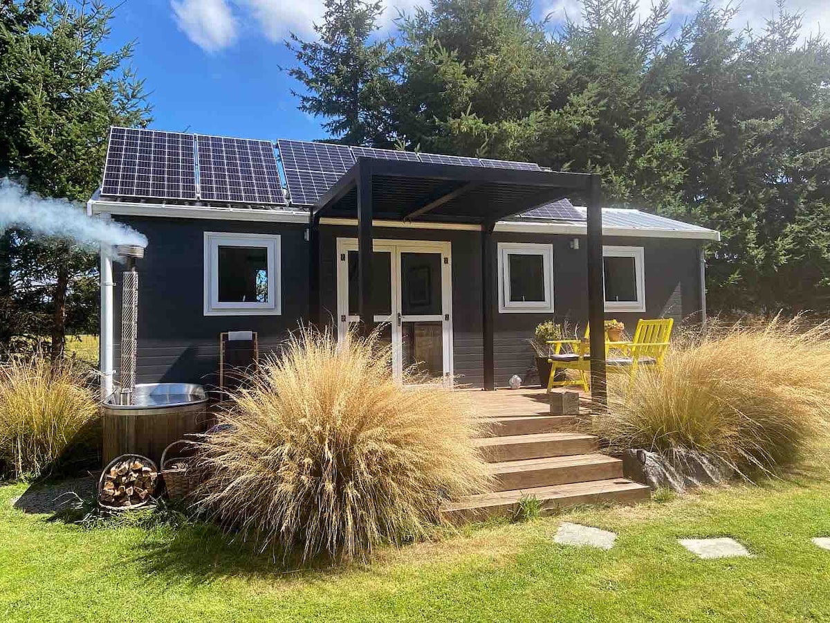 Escape to Pinecone Cottage, a completely private off-grid farmstay on the fringes of Fiordland National Park. Soak in a wood-fired hot tub, sleep in a cosy king bed, meet friendly sheep, alpacas & cows, stargaze beneath clear skies, wake to native birdsong, enjoy morning coffee on the deck, play a game, spot wild deer, and immerse yourself in the peaceful, eco-friendly charm of this secluded countryside retreat.
