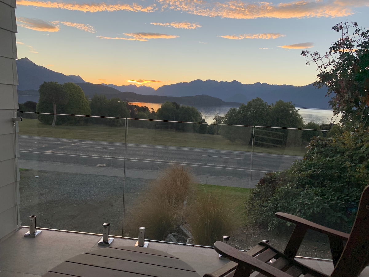 Beautiful lake view of Manapouri from this comfortable and funky little house. Everything you need for a luxurious stay plus extras including push bikes, and an outdoor hot tub to sit in under the stars. The "Lake to Lake" bike trail is across the road from the house, and Fraser's beach is just a few minutes walk on a good path. Quiet and peaceful. No added cleaning fee.