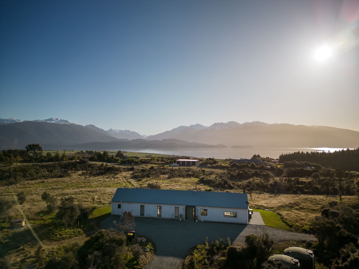 The Beech House - This beautiful new home with uninterrupted lake and mountain views, only 4min from Te Anau town centre is the best place to stay in Te Anau. This three bedroom home is beautifully designed & furnished, has a huge projector for movies, a spa to look at the stars and the most beautiful views. With 11 acres to run around you wont be worried about space. 360 degree views to watch amazing sunrises plus incredible sunsets over the lake and mountains.