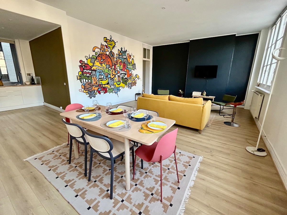 Un appartement en duplex plein de charme, décoré avec goût, en plein cœur du Vieux-Lille: - à 10min à pied des 2 gares Lille Flandres et Lille Europe - à 10min à pied du métro Rihour ou du métro Lille Flandre - à 5min à pied de la Grand-Place - à 1,5km (20min à pied) du Zénith de Lille - à 12km du Grand Stade Pierre Mauroy à Villeneuve-d’Ascq (15min en voiture ou 40min en métro) - à 12km de l’aéroport de Lille-Lesquin Parking souterrain, vélos V’Lille, bus,… tout est à proximité.