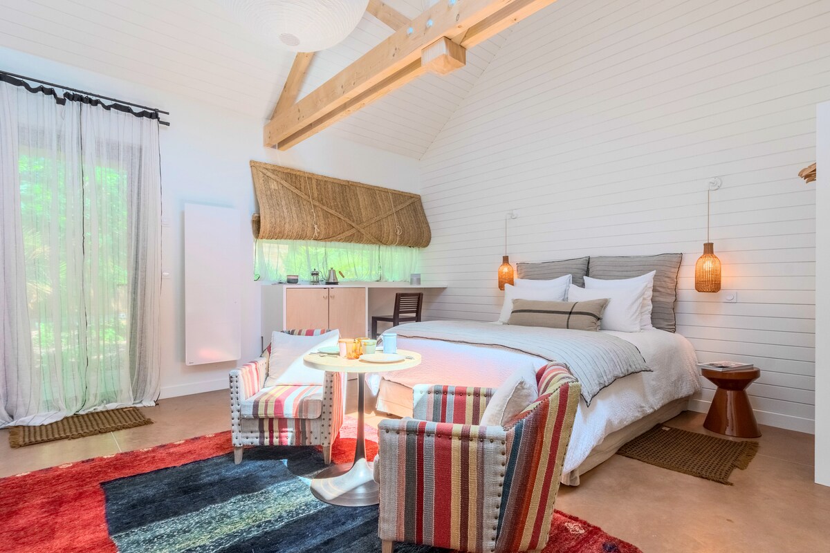 Le logement, agréable et confortable, est entièrement neuf et bien équipé. Sur une surface de 40m2, vous trouverez au rez-de-chaussée une pièce de vie lumineuse comprenant une cuisine équipée avec un espace repas et détente, une salle d’eau et une chambre. A l’étage, en mezzanine, un séjour avec canapé convertible et TV. La baie vitrée vous offrira une vue sur le jardin arboré partagé avec les propriétaires. La terrasse privative est exposée plein sud et dispose d’équipements extérieurs divers.