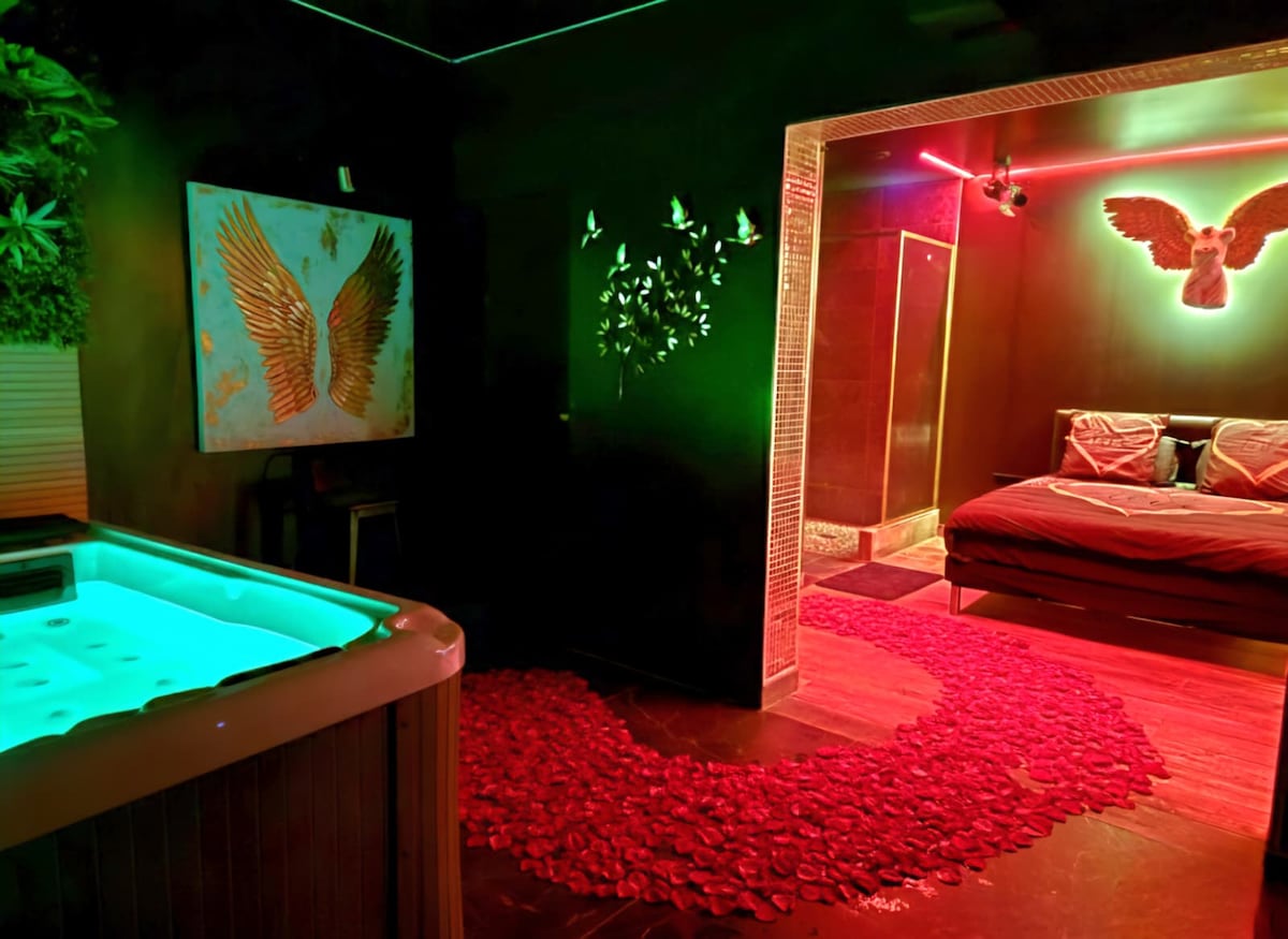 La Love Room est une oasis de romance conçue pour les couples en quête d'intimité et de moments précieux ensemble. Idéal pour une escapade romantique, un week-end en amoureux ou une surprise inoubliable. Jacuzzi privatif, ambiance cosy et intimiste, à seulement 20 minutes de Lille, en Belgique (Courtrai 8510). Parfait pour un séjour insolite, avec son ambiance chaleureuse et ses équipements luxueux, notre chambre est le cadre idéal pour raviver la flamme et créer des souvenirs durables 😍