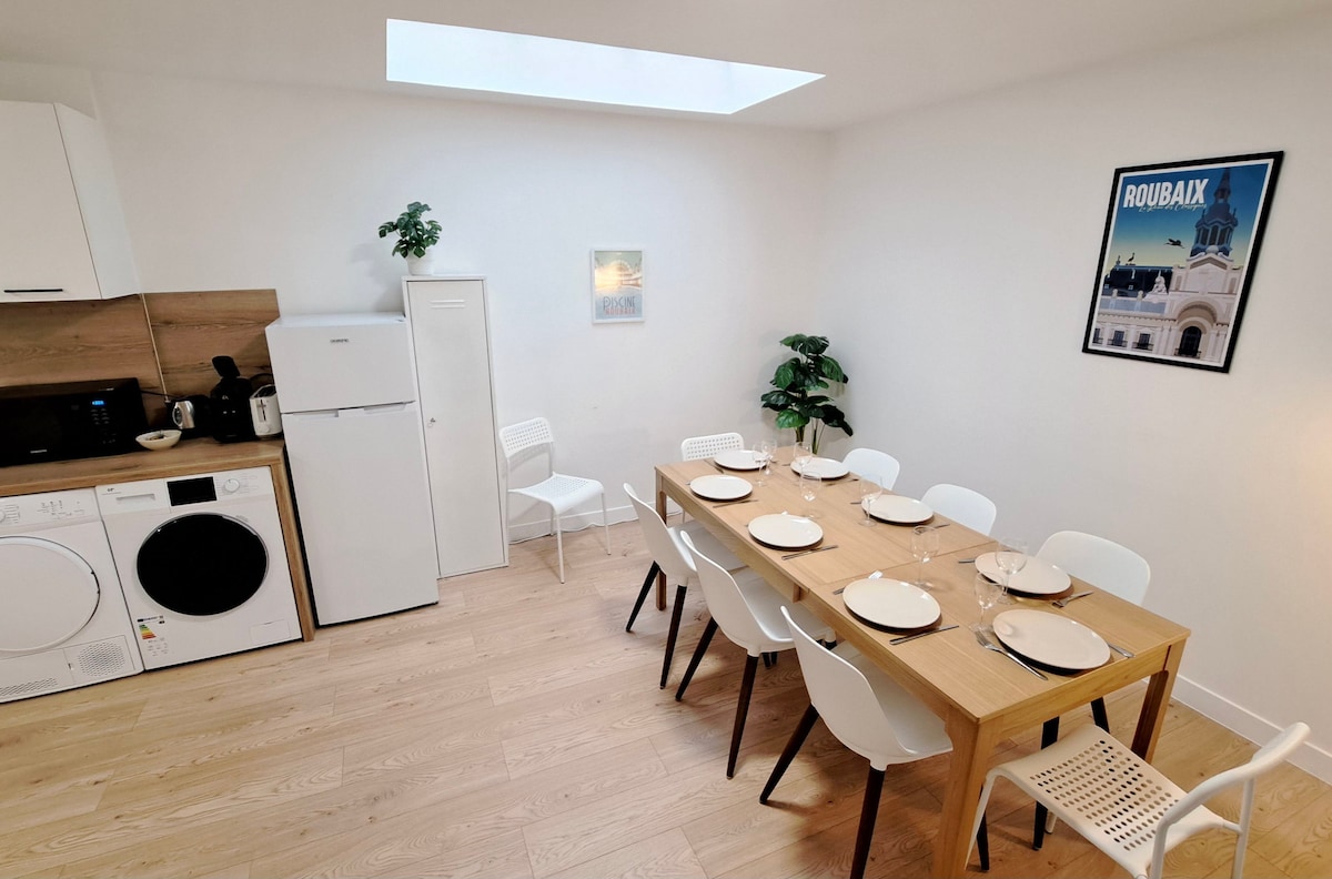 Welcome to Ô'Bon'Coin! 🏡 Discover the charm of our region's traditional red bricks 🧱! Our 70 m² house (capacity 5 guests), entirely renovated, is your ideal base for exploring the Hauts-de-France region. Quiet ✨ and perfectly located, it is only 15 min from Lille 🏙️ and close to UNESCO sites. Everything is designed for your comfort! The K-Way brand was created in our region. Come discover the unique character of the North! 👋