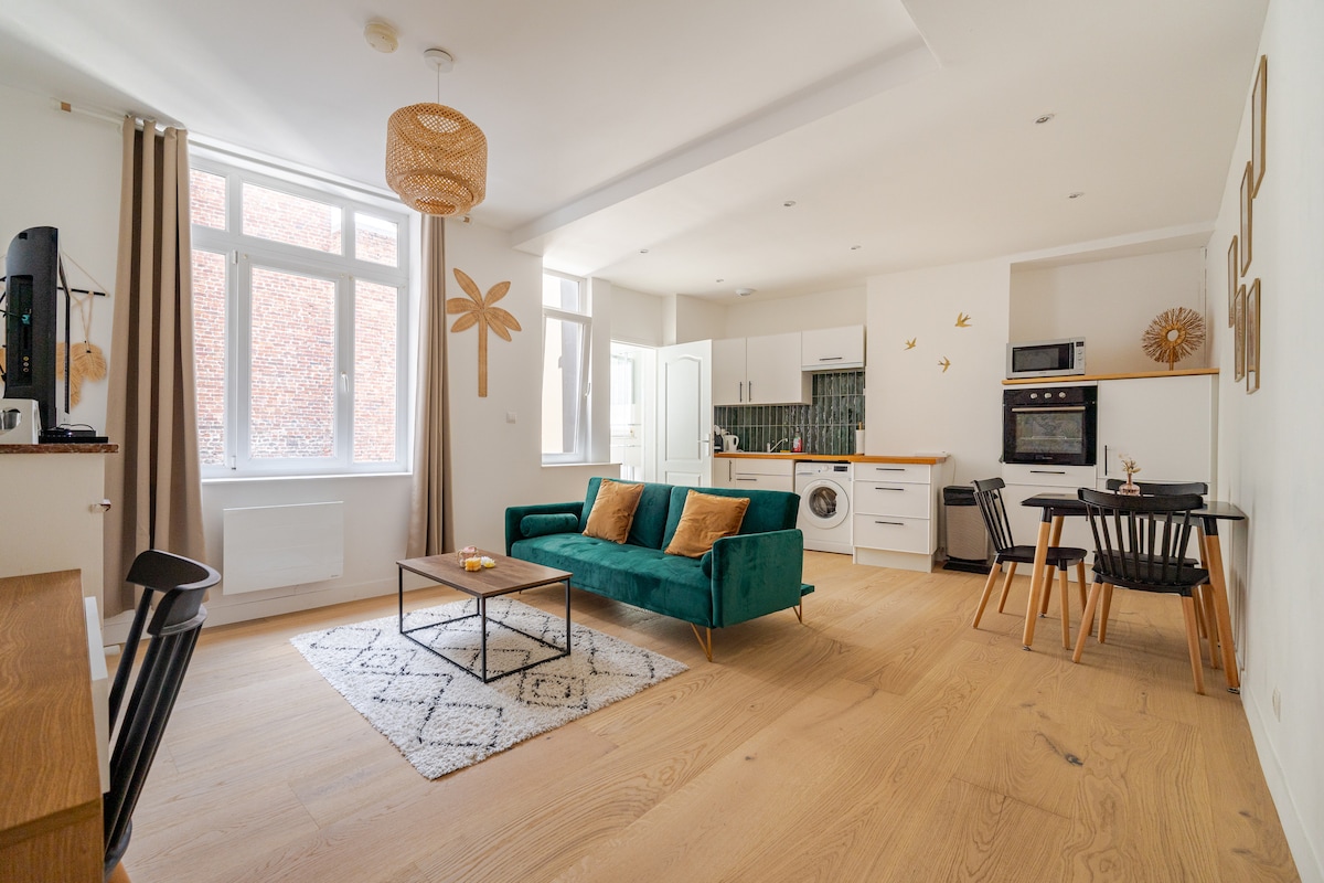 Charmant appartement Lille centre situé à deux pas de l'hyper centre à deux minutes de la gare Lille flandres. Immeuble Art déco. Magnifique décoration situé au 5ème étage avec chambre au calme côté cour. Charme, luxe et calme. L'opéra, la Grand Place et le Vieux-Lille se trouvent à moins de cinq minutes à pied. Les deux gares sont très proches comme le métro ou le tramway. Proximité avec des supermarchés. Appartement zen, serein et spacieux avec un grand raffinement.