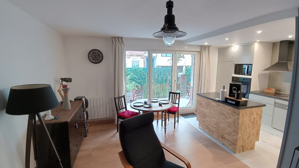 Discover this true gem of 50 m², renovated in 2022, peacefully located in the heart of Vieux-Lille—perfect for a romantic getaway or an exceptional stay. Enjoy a fully independent, tastefully decorated home with all modern comforts and secure parking included. Relax on the private terrace, ideal for a quiet breakfast or a drink for two. This guesthouse is perfect for couples and business travelers seeking a peaceful and refined retreat.