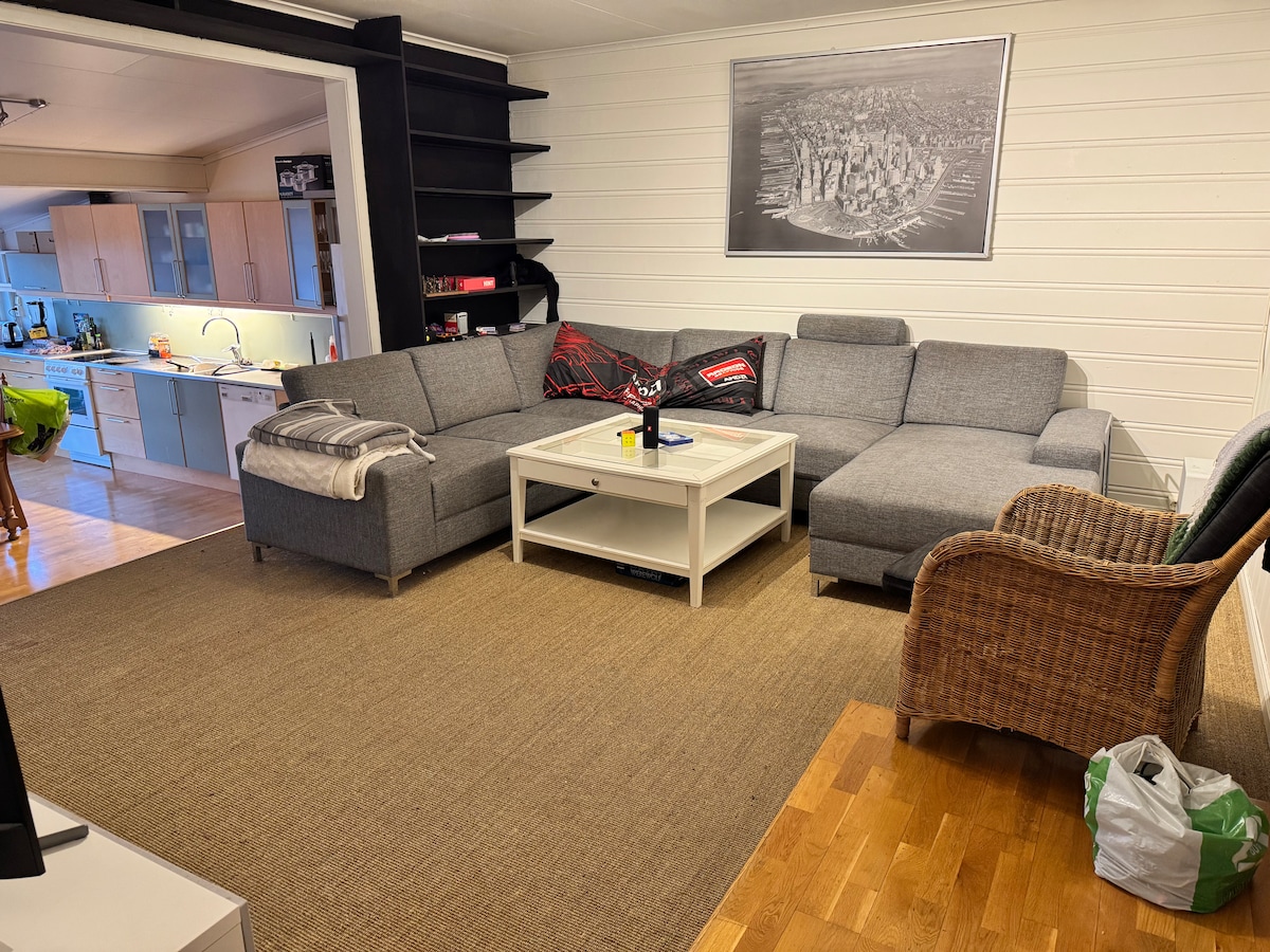 1. etasje til leie i i et arkitekttegnet hus fra 2021. Størrelsen er på 120 m2, med stor stue, kjøkken, bad og 3 soverom. Egen privat terrasse og stor hage tilgjengelig. Parkering for 1 bil. Boligen ligger nær en vakker sandstrand ved Tingsaker Familiecamping. Det er en kort gåtur til Lillesand sentrum og flotte turområder. En elv renner ved huset, hvor man kan fiske. Dyreparken ligger en 15 minutters kjøretur unna. Til Grimstad og Kristiansand sentrum tar det under 30 minutter med bil.