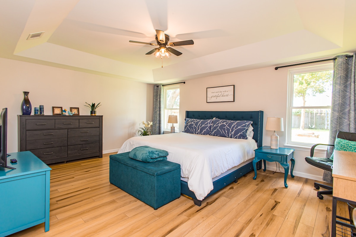 Beautiful 3-bedroom, 2-bathroom family home close to the Navy base, Perdido Key and Pensacola airport. Located within less than 10 minutes to fishing / boat docks and 15 minutes to the beach. Quiet family neighborhood. Finished for families, highlights: toys and games, kids essentials, fully equipped kitchen, fast internet, comfortable and secluded master suite with a king bed, huge family-friendly yard with a covered dining area, slack line, swing set, fire pit and grill