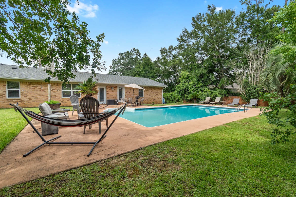 Enjoy this UNIQUE retreat! Located on 3 acres of lush pines, this home is the perfect getaway for you or your family. With the romantic modern vibe of the house, you are sure to feel RELAXED, REJUVENATED and ready for whatever is next. Cool the day off in our backyard SITTING POOL, or read a book in our 7 ft SITTING WINDOW. Watch the pines sway through our living room observing windows or have friends over for dinner at our outdoor dining area! No matter the reason, the Pine House is for you!