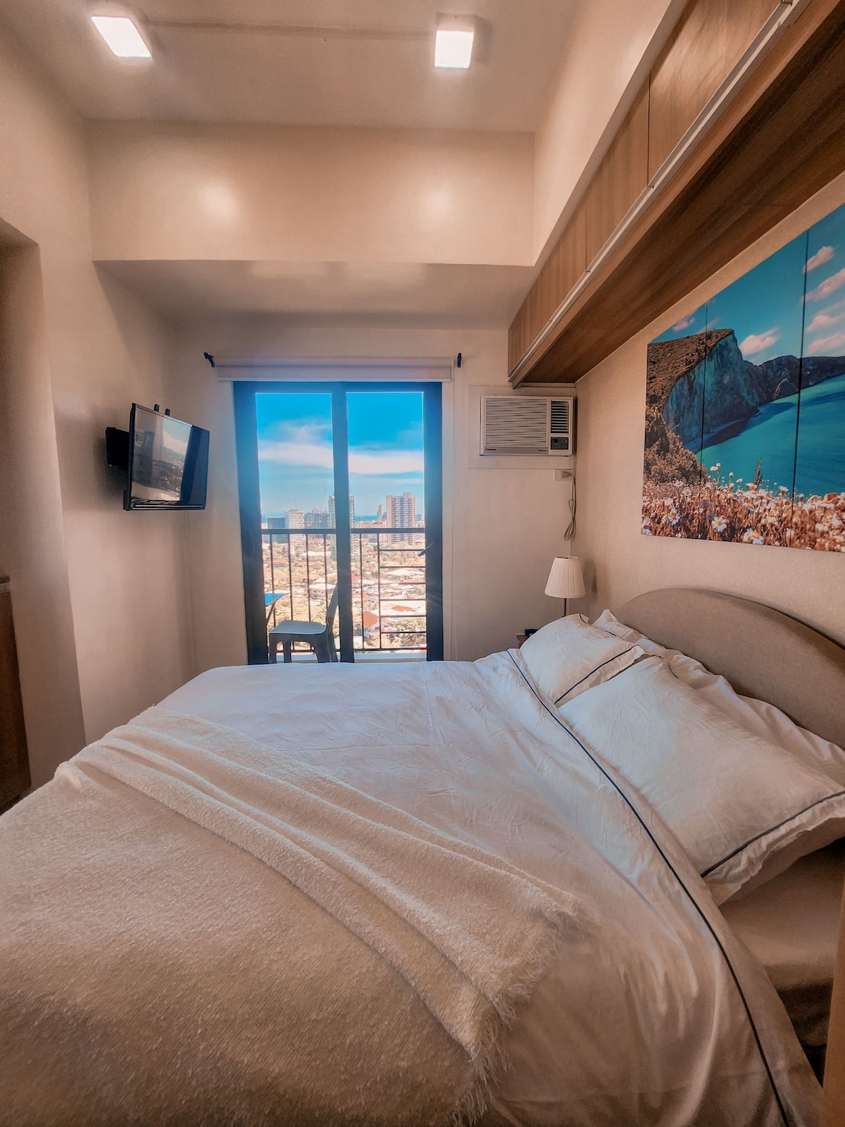 Comfy, accessible, and aesthetic condo studio unit near Mactan Cebu International Airport 24 sqm condo unit with balcony Oceanview with Queen-sized bed • can fit 4-6 pax • extra foam mattress and extra blanket provided • free pool access for 2, paid parking inside Bathroom with: • shower, heater, bidet • shampoo | conditioner | body gel provided • towels Entertainment • 200 mbps internet connection • 1080p 4K Smart Projector with surround sound • Mini karaoke • Card and board games