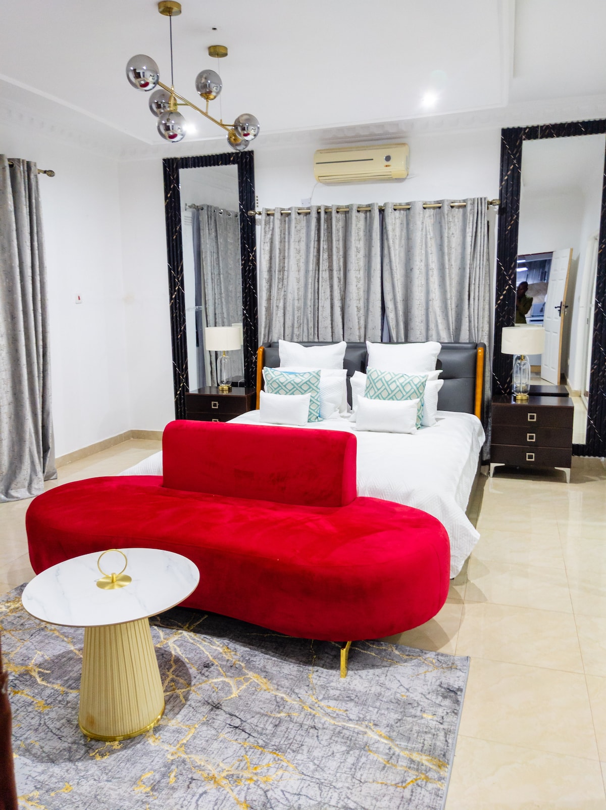 This unique place has a style all its own. Indoor: It offers 2 beautifully furnished Self contained Bedrooms with King & Queen Size beds respectively. The big living room is uniquely furnished in contemporary Italian style furniture to give a truly inviting and glamorous place to call home. Outdoor: Located in a safe, upmarket residential suburb just off the M1 this Apartment is conveniently located between the Airport (20 mins) and the City Center (10 mins).