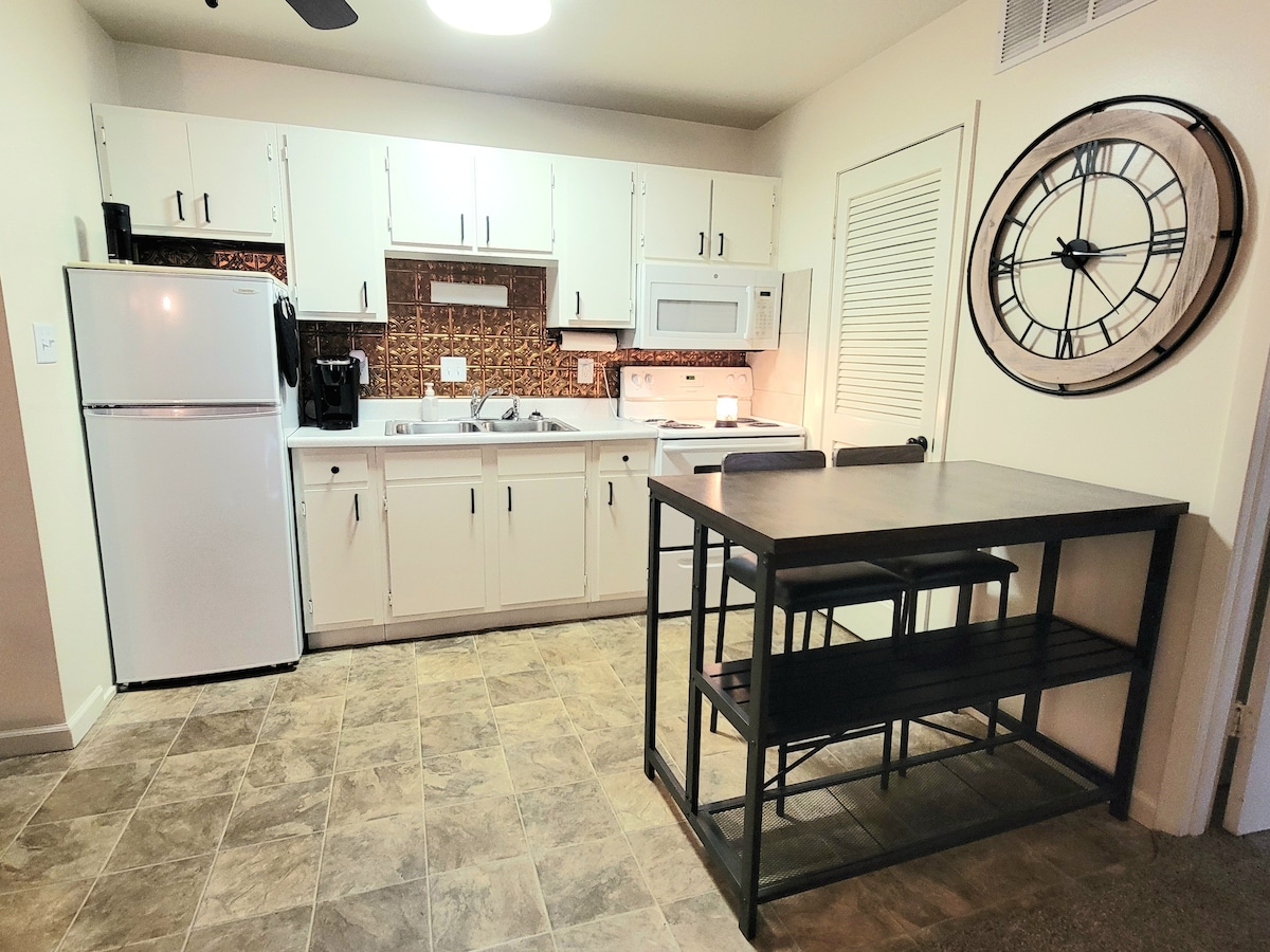 This quiet relaxing condo provides you with everything you need to unwind after a long day. Fully equipped kitchen, including a Keurig coffee maker. High speed WIFI. Smart TV in Living room and a second TV in the bedroom with Roku for those evenings when you just want to stay bed. Washer and dryer located in building at front of the complex. Reserved parking spot in front of condo. Walk out patio. Place is perfect for those traveling for work. Ideally located near many great restaurants.