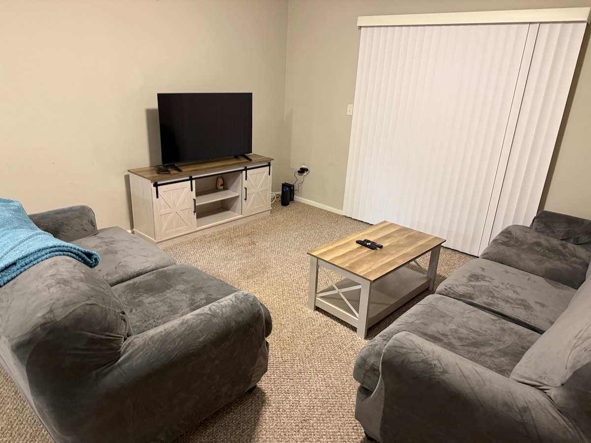 Don’t pass up this unique, quiet, stylish 2 bedroom 1 1/2 bath apt. This modern day place is ready for you to take it easy. It has all the comforts of home which is fully furnished. Being equipped with two baths, it makes it easy to go to work, or a night out, or get ready for traveling the next morning. When you get here you may just want to stay in with this fully equipped kitchen. Don’t forget with two smart TVs you can recline back, relax and take in a movie. This place has all the feels. 🥰