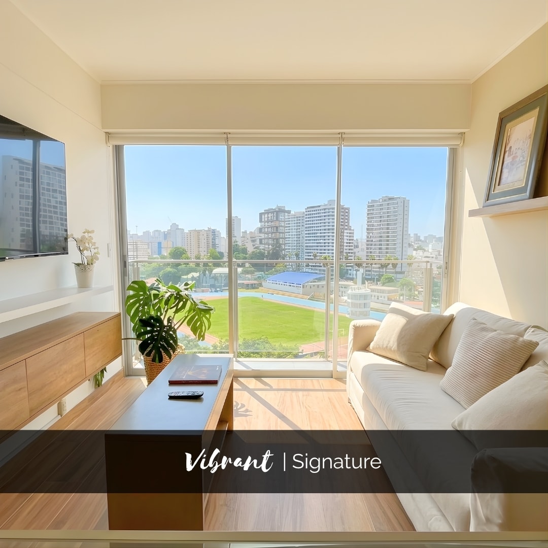 Super well located in MIraflores. Ideal for long stays and working nomads. Beautiful and quiet neighborhood. 1 block from boardwalk and best foodie street in Lima. Cozy, warm, modern, comfortable and very bright. Excellent Wifi! Fully equipped kitchen. Exterior sights and ocean view. Concierge 24hrs. A step away from bars, restaurants, malls, markets, cinemas, galleries and theaters. Beautiful parks with sea sights and outdoor activities. Walking distance from the coolest spots of Miraflores.