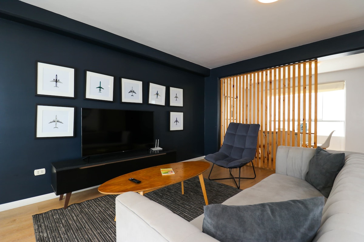Elegant Art Loft in central Miraflores. King suite with private bath, walk-in closet, and balcony surrounded by greenery. Bright interiors merge design, comfort, and calm with a fully equipped gourmet kitchen. Enjoy Smart TVs, fast WiFi, washer/dryer, and 2 parking spaces. Steps from Kennedy Park, cafés, and the ocean — a serene, design-forward stay hosted with care.