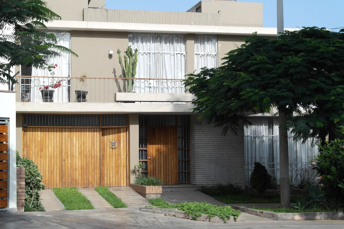 The house is exceptional. It is for recovered house for the 40 with high celings and enjoy the quite garden with the sound of the birds and terrace. All the furniture have blended with modern and antique style. The house counts with 4 comfortable suites and handmade peruvian decoration. We located a 5 blocks of the boardwalk that you can enjoy pacific ocean , you can walk, ride a bycicle. We are close to the lighthouse and the chinesse park.