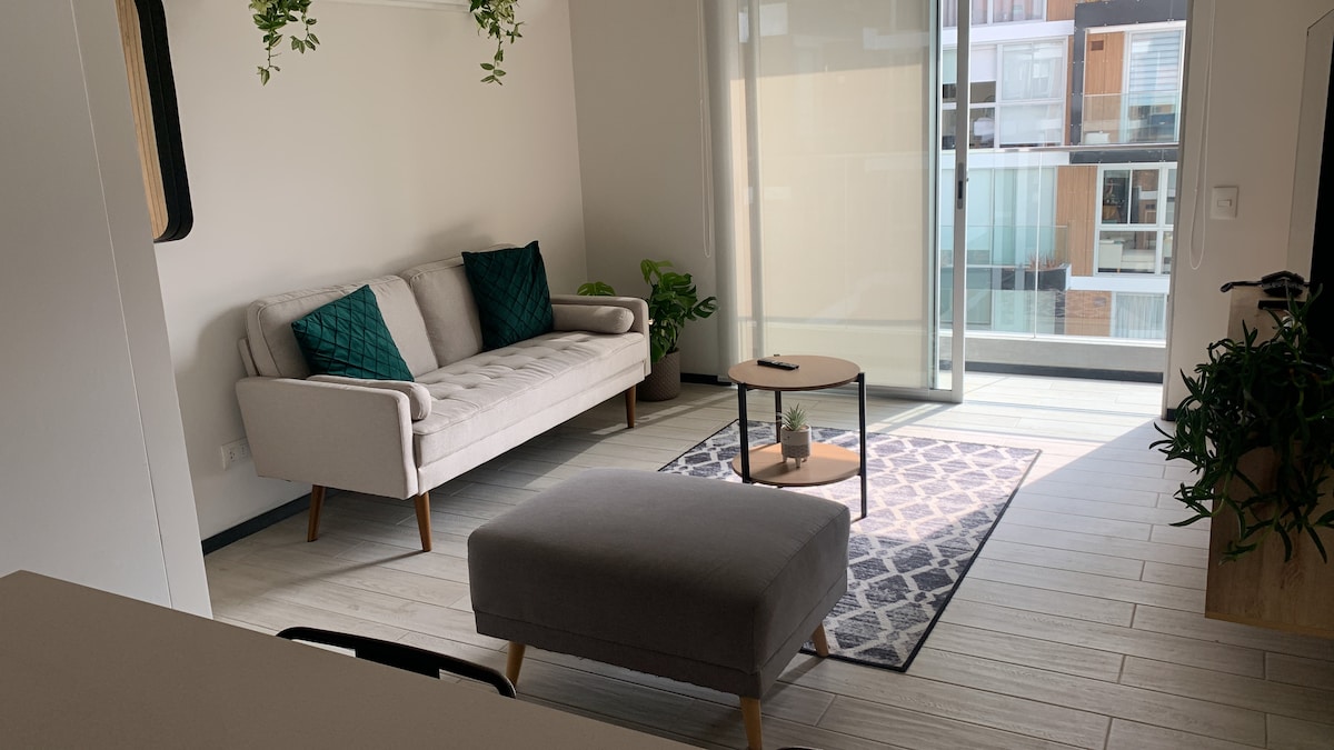 Enjoy the privacy of this cozy apartment with independent access in a 5-story building in Barranco. Surrounded by lush trees, traditional houses, parks, museums, and cultural centers. At the local market, you can enjoy cheeses, hams, fruits, and typical food at very affordable prices. Just three blocks away, the Malecón invites you to enjoy peaceful walks, sea breeze, and memorable sunsets. Ideal for those who wish to stay in a district rich in culture and history.