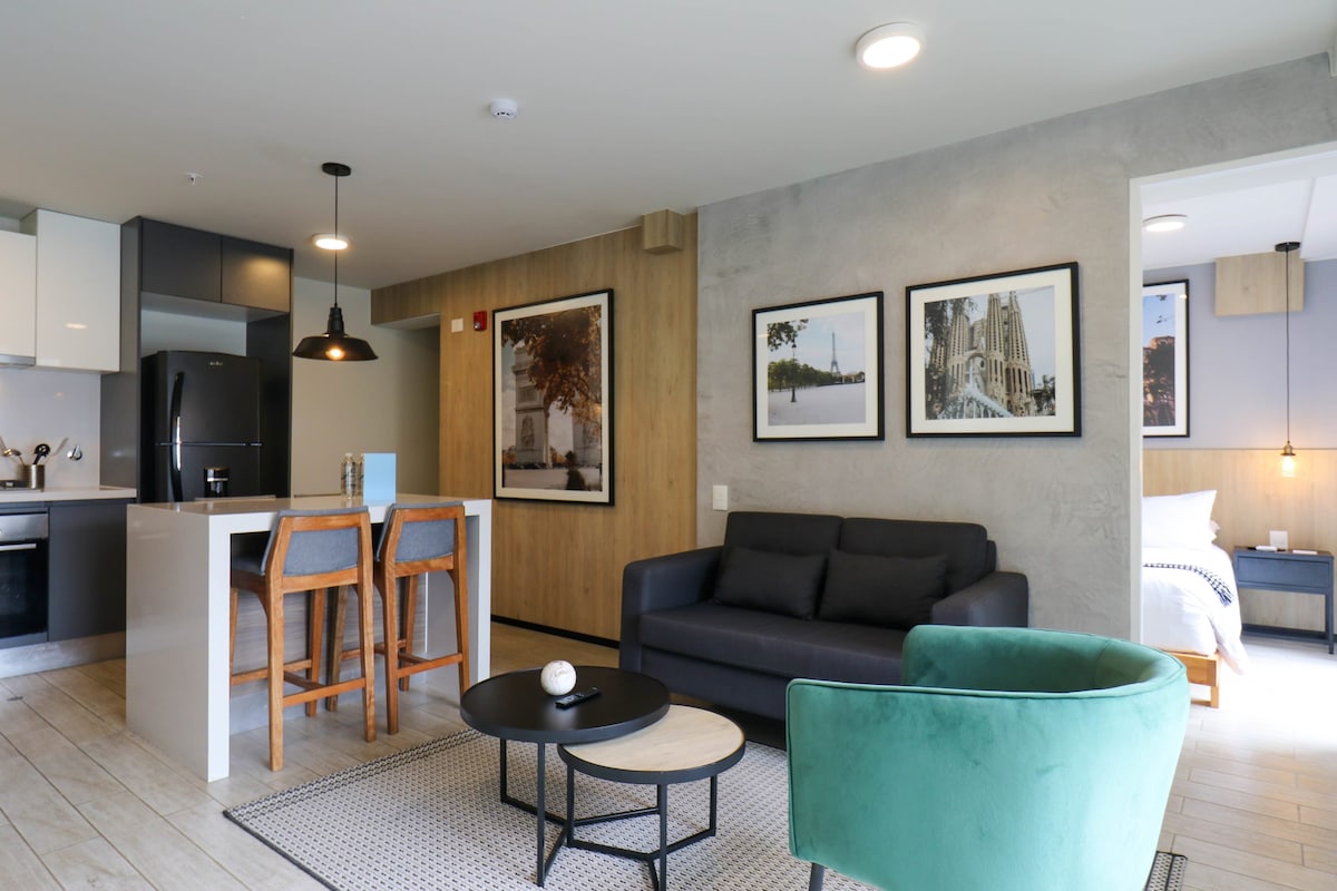 ★ "It has everything you need to spend an incredible stay." Located in Barranco, the most important downtown, cultural, romantic and bohemian district of Lima; discover it by walking. • Tourism & Business • 3rd floor of a safe and family condominium. • Private balcony • Rain shower • Fully equipped Kitchen • Onsite Washer + Dryer • 24h Concierge & Vigilance • 5min to Malecón / Miraflores • 10min to Business area • 20min to Historical Center • Close to bus, shops, restaurants and entertainment