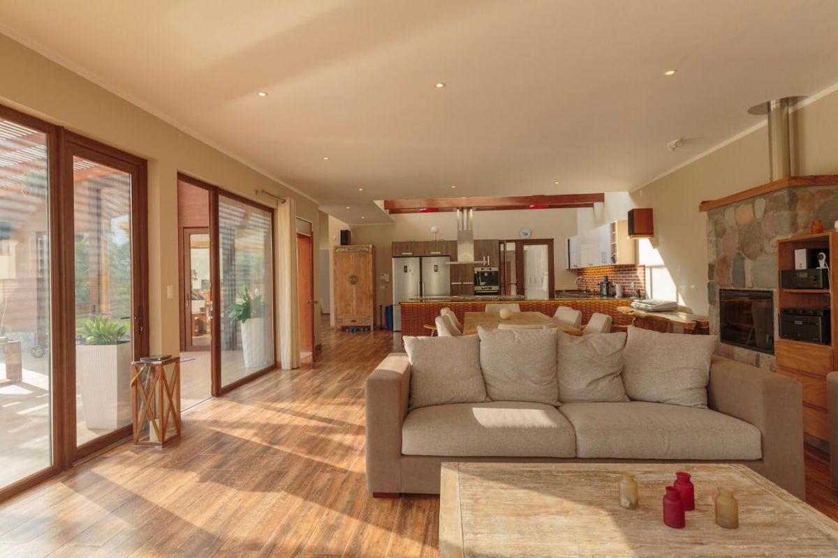 🏡 Vive momentos únicos en esta hermosa casa de campo de un solo nivel. 🌿 Disfruta de sala-comedor, cocina americana y una gran terraza. 🏊♂️ Relájate en la piscina rodeada de jardines. 🚗 4 cómodos dormitorios, 2 baños completos y cochera para más de 6 autos. 🐶 ¡Tus mascotas también son bienvenidas! ⭐ Más de 100 reseñas positivas nos respaldan. Nuestros huéspedes destacan la comodidad y tranquilidad. 🏍️ Cuatrimotos y caballos cerca. 🍽️ Restaurantes y bodegas.