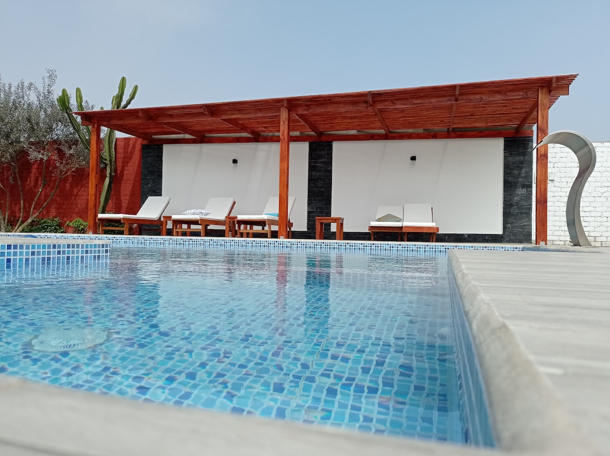 Escápate de la ciudad y disfruta de una experiencia única en nuestra acogedora casa de campo. Disfruta el mejor clima cerca de Lima, con sol todo el año. Piscina , jardín amplio , zona de parrilla y horno de barro. Ubicada en un condominio de solo 5 casas independientes. Espacios cómodos y ventilados. Cocina totalmente equipada. TV y WIFI de alta velocidad. Estacionamiento privado . Pet friendly. Perfecta para familias, parejas o grupos pequeños que buscan tranquilidad. Relájate en el campo!