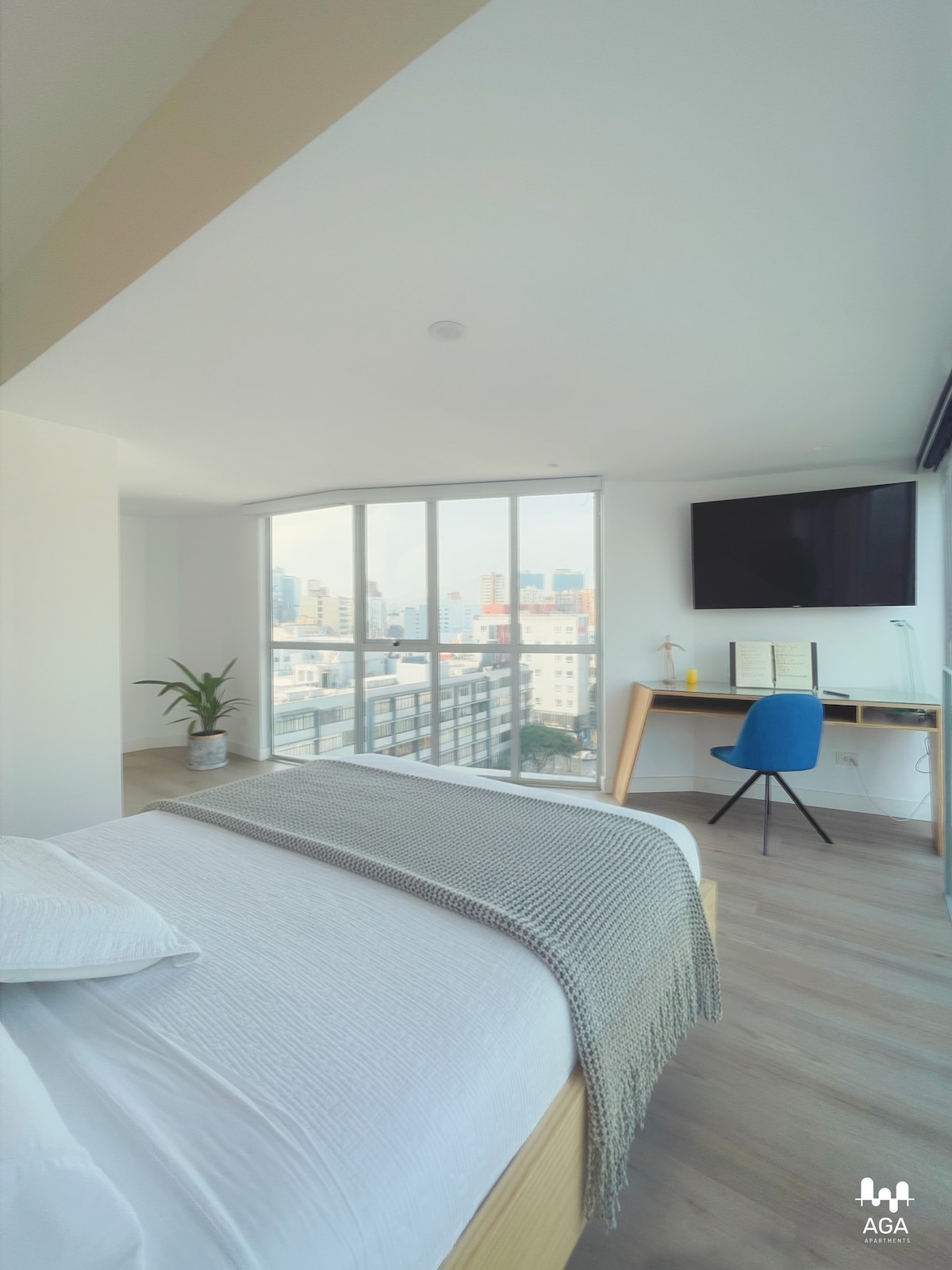 Wake up to skyline views in this luminous boutique loft in Miraflores, Lima’s safest and most walkable district. Floor-to-ceiling windows, curated design, and a bright balcony create a calm, modern atmosphere. Enjoy rooftop pool, gym, coworking, and parking. Suite-style master plus a second room with desk, ultra-fast Wi-Fi, 24/7 reception, and self check-in. Just half a block from Kennedy Park, cafés, nightlife, and top restaurants.