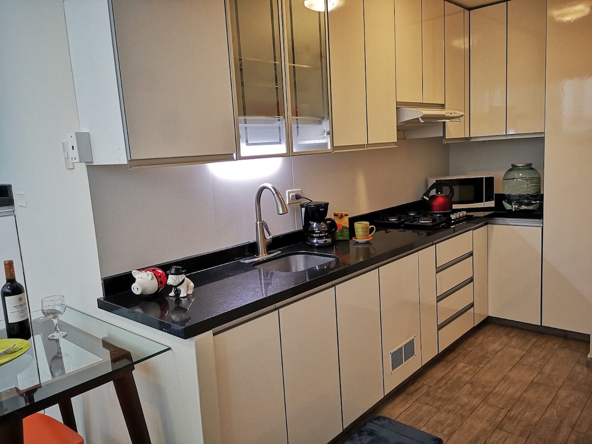 Disfruta de una experiencia con estilo en este alojamiento céntrico. Cuenta con ascensor y vigilancia las 24hrs. Esta a 2 cuadras del parque Kennedy, a 15 minutos a pie de Larcomar, con excelente acceso a transporte público y privado, con una vista a todo miraflores y ventanas aislantes si prefiere el silencio. Tiene menaje completo y todos los accesorios para que tenga una estadía 100% cómoda.