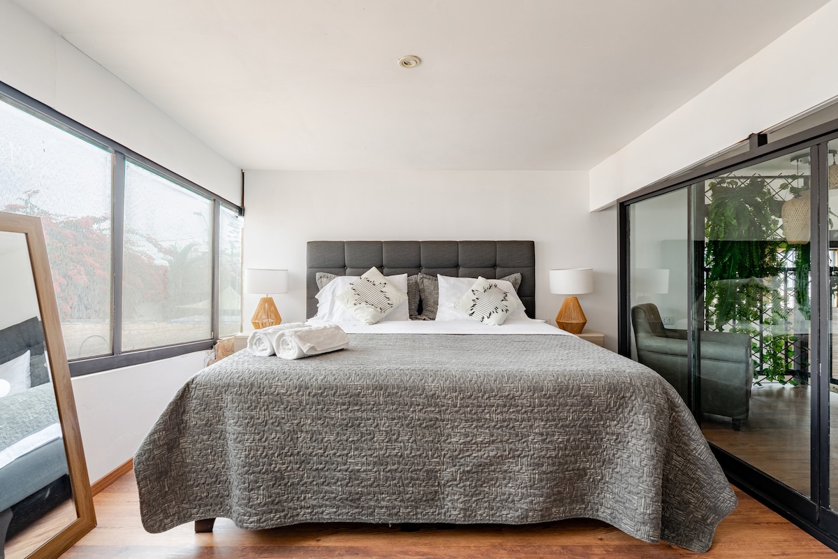 Live like a local in this traditional townhouse with contemporary touches, natural light, and a garden terrace. Just steps from the ocean and Miraflores' vibrant center, in a peaceful, cosmopolitan area. Private entrance and all modern comforts. Nearby construction (limited hours); discount applied. Authenticity, location, and charm await!