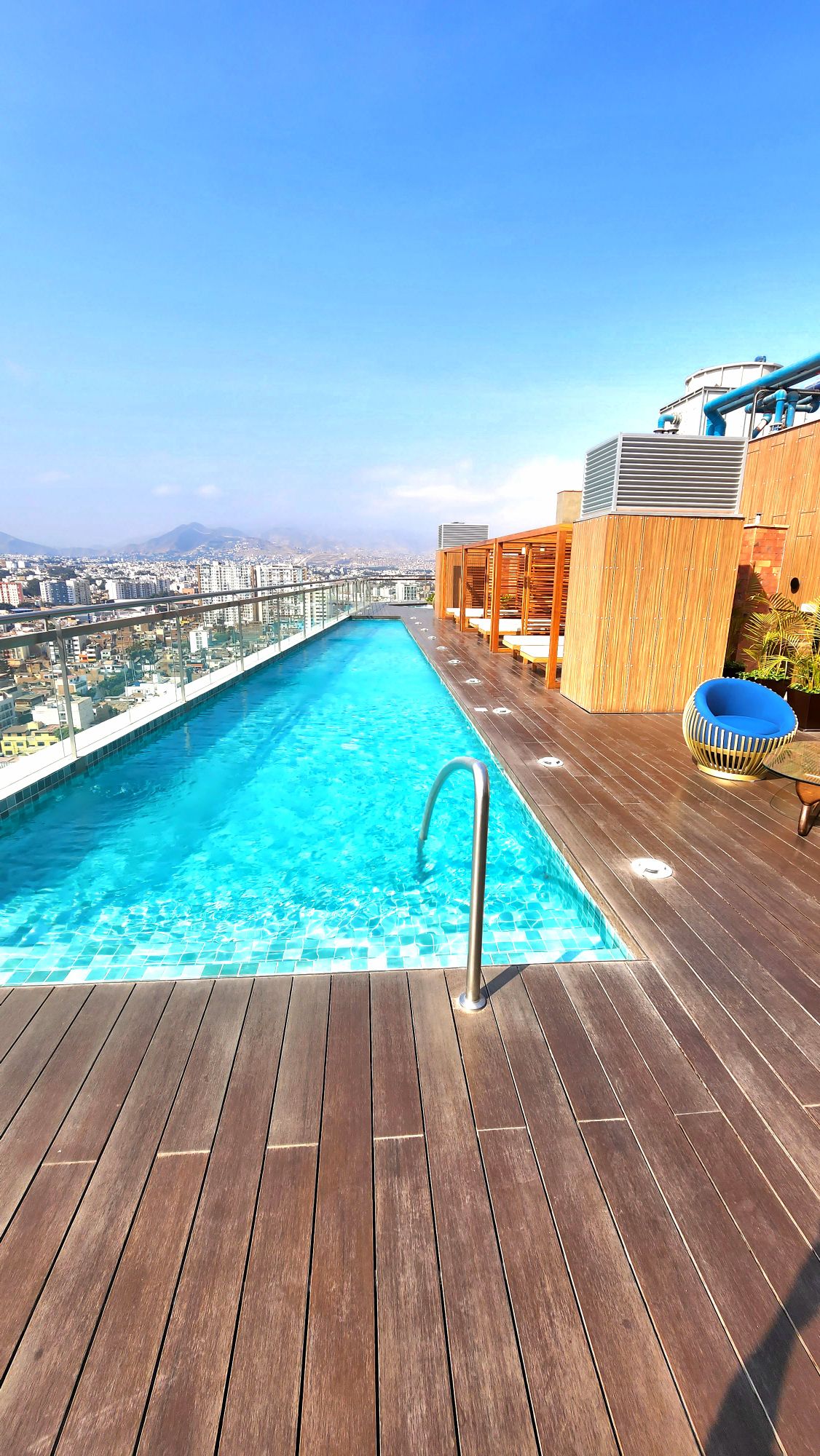 Beautifully decorated, 1 bedroom apt, sleeps up to 2 adults + 2 children (10y/o max). Well equiped, steps away form the ocean and walking distance to the happening district of Miraflores. Minimarket and coffee shops downstairs. Great rooftop with pool and hot tub. Stunning views of the ocean and the city. 80% Sound-proof windows recently installed. A/C in living room. I'm a Trip Designer, so you'll have free Travel Advise as well! 👍😉✈️🌎 Please read the "Other details" section before booking