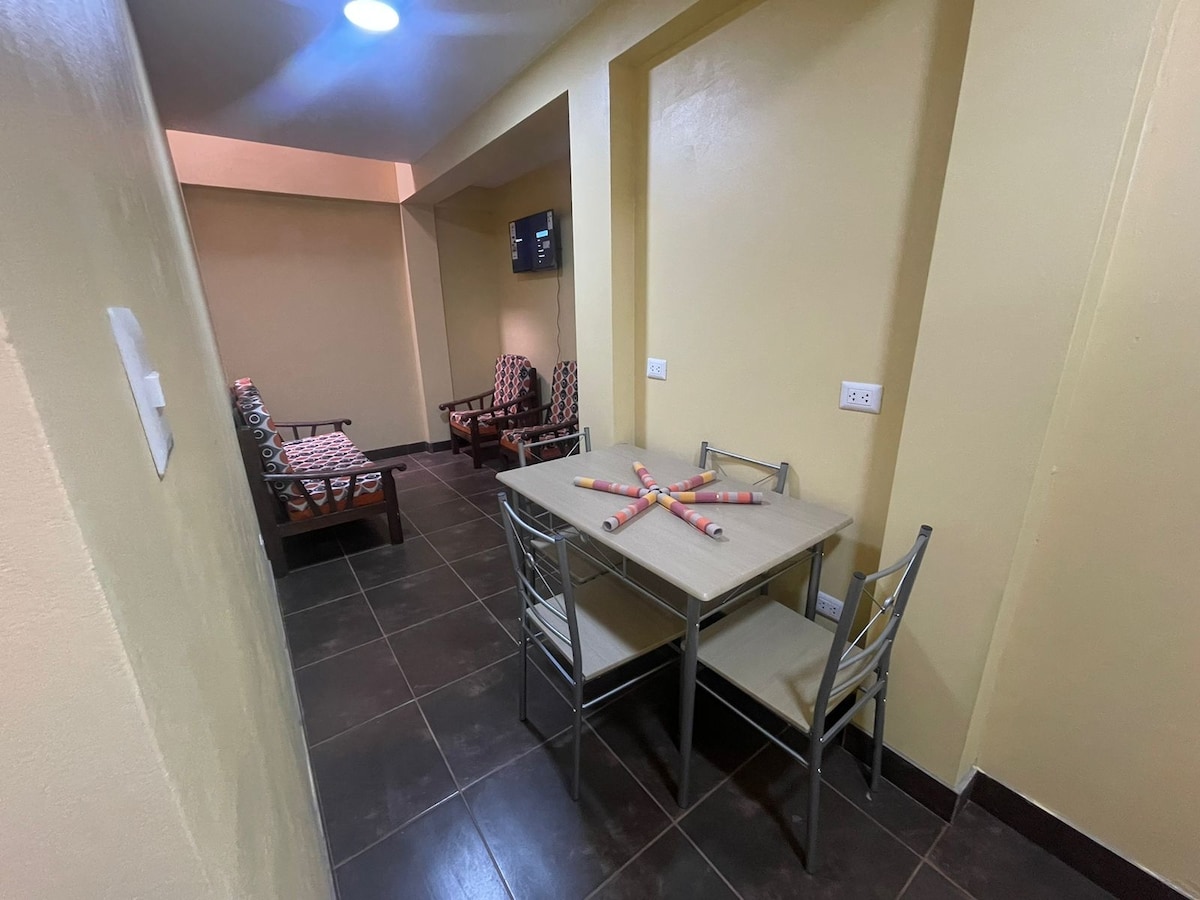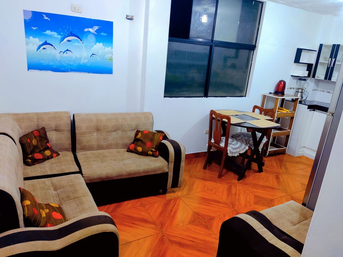 Desde este alojamiento céntrico todo el grupo podrá tener fácil acceso a todo. Distrito súper seguro, limpio y ordenado, minidepartamento a dos cuadras de Playa Cantolao, malecón para caminar, restaurantes, panadería, lavandería, todo al alcance de los residentes. Mini departamento equipado y amoblado.