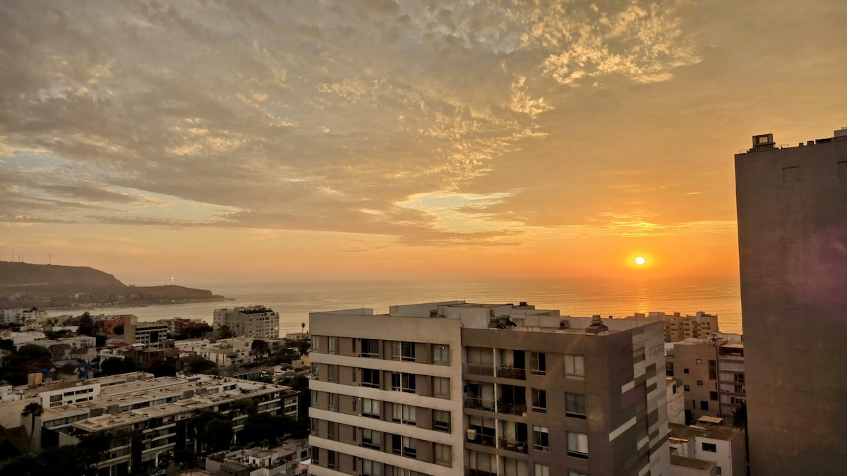 New elevators recently installed and a refreshed lobby! Enjoy a privileged oceanfront view from your bedroom or balcony above the luscious green coastal parks of Miraflores, the best neighborhood in Lima. Listen to the waves crashing on the rocks below while relaxing or napping and stroll up the boardwalk for some of the best food in the world! Just a short 2 block walk down the malecon to the picture-perfect lighthouse, an Insta fave! Enjoy the building's shared roof-top pool and grill!