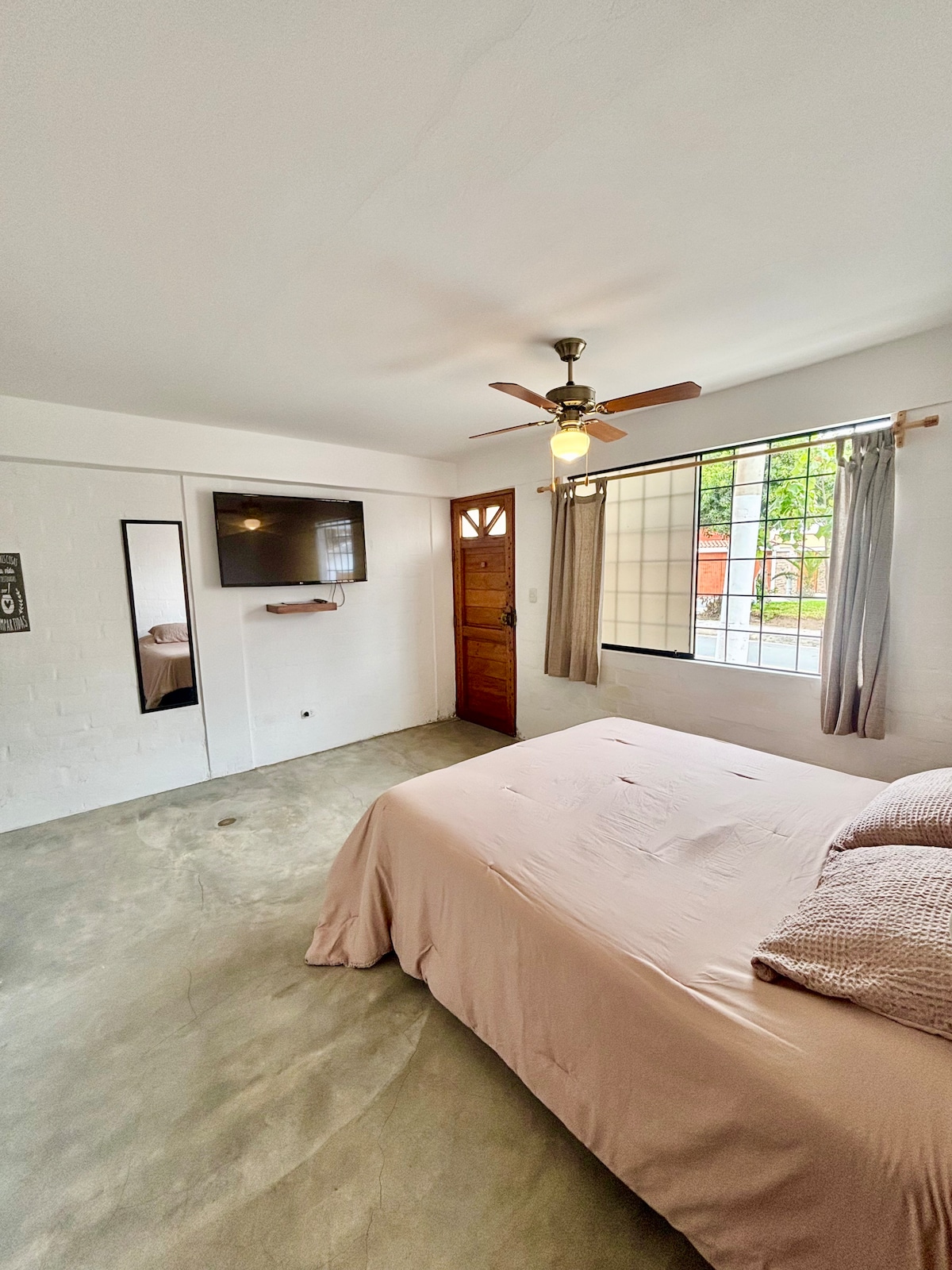 Quédate en nuestra casa de huéspedes y disfruta la combinación perfecta entre confort, seguridad y ubicación. Entrada independiente, cama King Size para descansar profundamente y cama de plaza y media adicional. Si son más huéspedes, se puede agregar colchón inflable de plaza y media eléctrico, previa consulta. Cocina equipada para preparar lo que quieras, WiFi y Smart TV 55” para tus momentos de relax. Afuera te esperan parques, minimarkets, Starbucks, el Jockey Plaza y Pentagonito muy cerca.