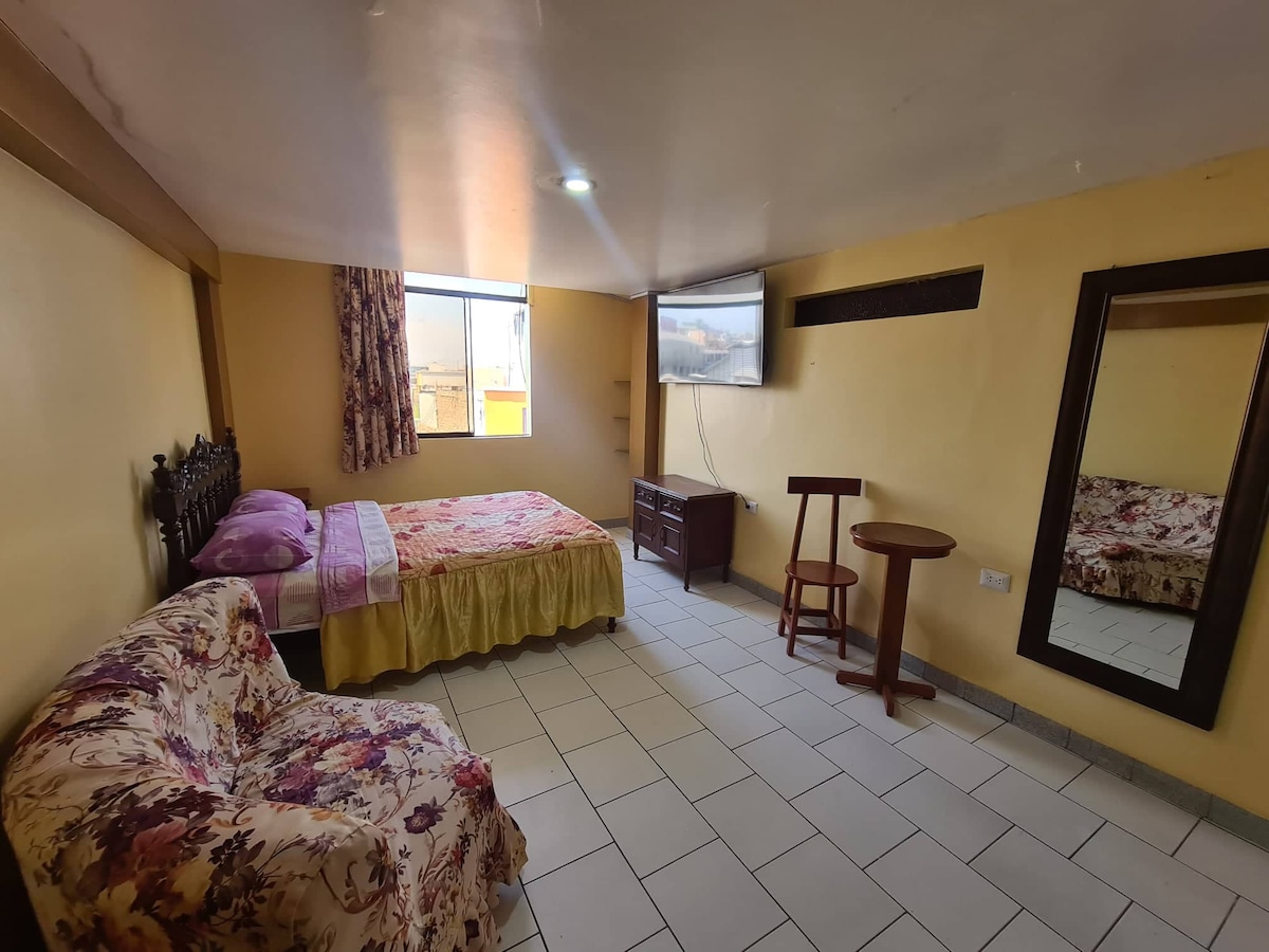 Hospedaje ubicado en una zona centrica de la ciudad de Lima, cerca al Centro de la ciudad, asi como a centros comerciales, al Emporio de Gamarra. Habitaciones privadas con baño privado y equipadas con Smart TV de 50" y Movistar TV; aire acondicionado, camas de 2 plazas.