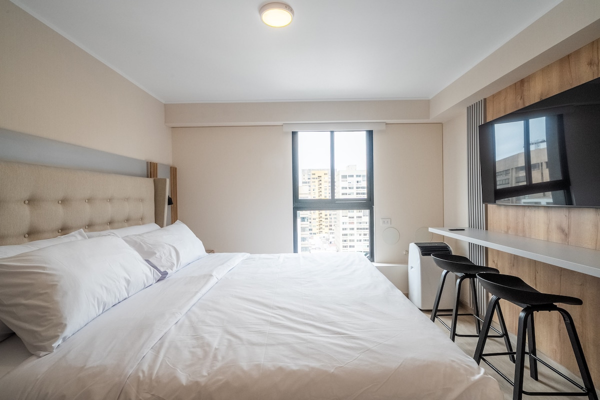 米拉弗洛雷斯泳池共享空间,单间公寓,特大号床,空调,无线网络