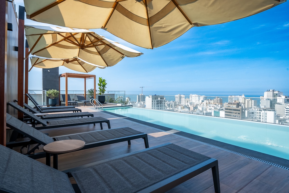 1BR King Bed Miraflores Infinity Pool Coworking AC