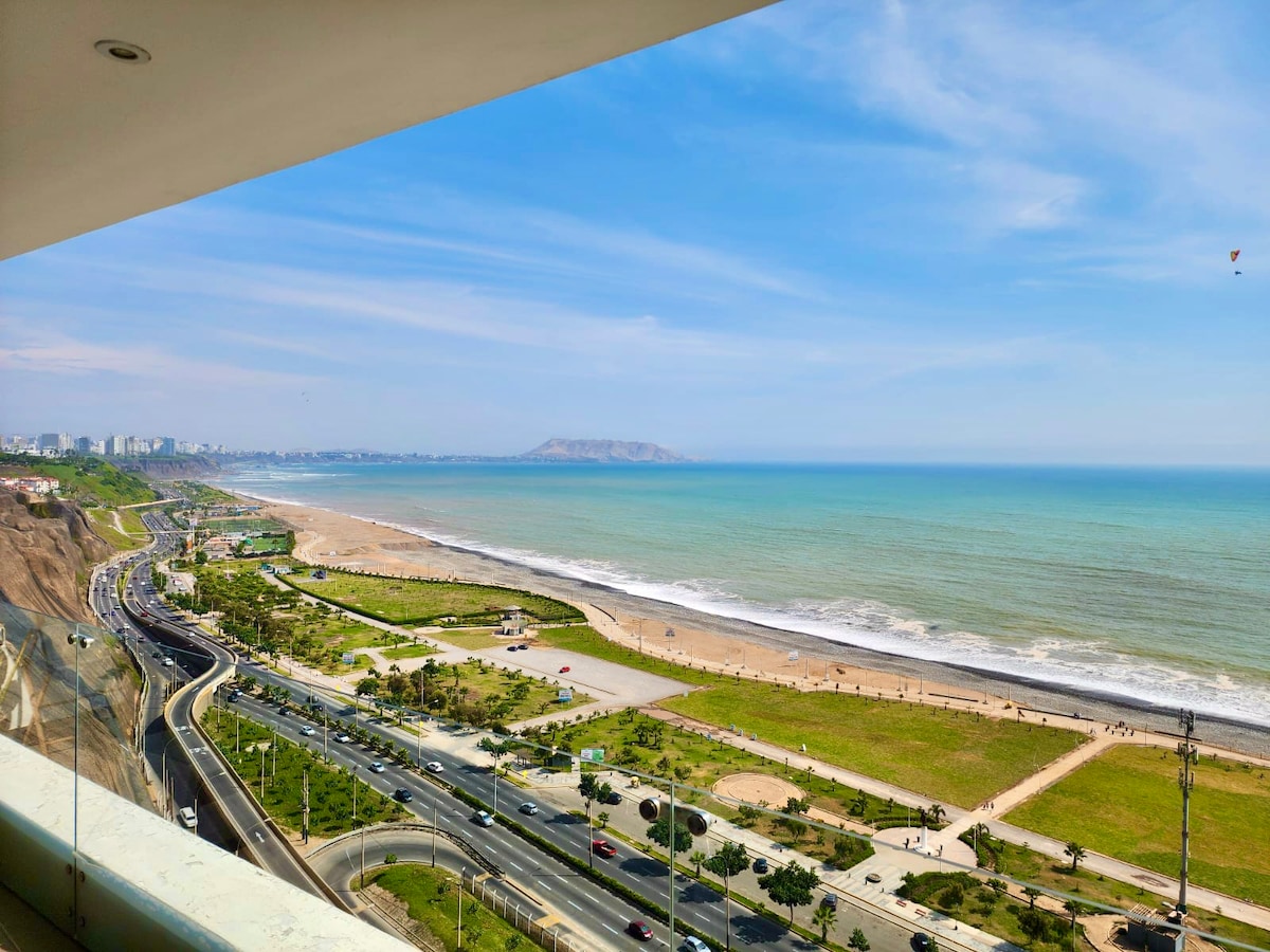 Departamento con hermosa vista al mar, cerca al Aeropuerto y de los mejores lugares turísticos de Lima, amoblado con todas las comodidades. Consta de: Sala, escritorio, Kitchenette, 1 Dormitorio con cama queen, 1 baño y una Terraza con vista al mar. Con áreas sociales: Sala de Cine, Sala de juegos, Patio con Fogón, Lavandería, Sala de Adultos, Gimnasio, Sauna, Ambientes de Parrillas, Terraza con Tina de hidromasajes, Piscina para adultos y niños.