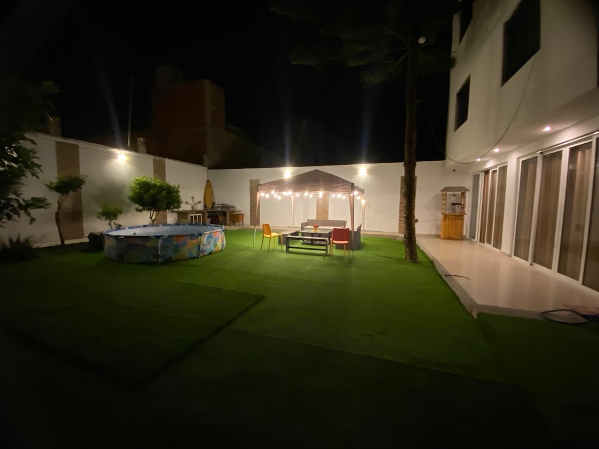 ¡Casa en playa Pulpos, ideal para familias y reuniones! Disfruta de una amplia y acogedora casa con 100 m² de espacio interior y un patio de 150 m² con cochera y con piscina de parantes para los más pequeños. ¡Perfecta para celebrar cumpleaños o simplemente relajarte! Equipada con cómodos sofás, parrilla, horno artesanal y caja china para tus comidas. Ubicada en una zona privilegiada, cerca de discotecas IN, Floripa , rest como Maras, Sarita y Norkys, C.c como Wong ,Tottus,Mass etc