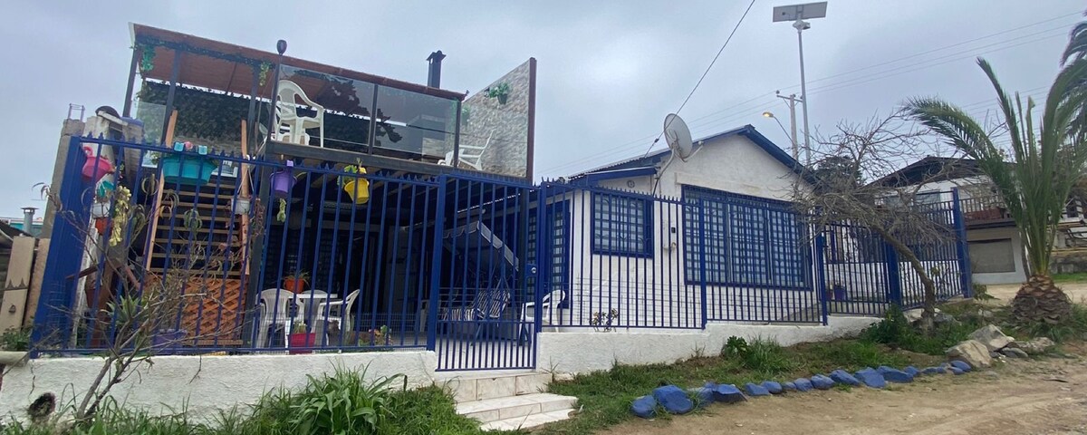 Relájate y disfruta en un maravilloso entorno natural, donde se vive la playa, el humedal, campo, la noche estrellada y más, nuestra casa es amplia y acogedora, los huéspedes se sienten como en su hogar. Se ubica en una terraza frente a la playa grande de Tongoy (3-5 min en auto), distante a 20 min al sur de Tongoy, 5min de puerto Aldea y 10min de la Hacienda el Tangue, experimenta atardeceres únicos alrededor de una fogata o en una rica Hot Tube!!! (consulta valores y disponibilidad).