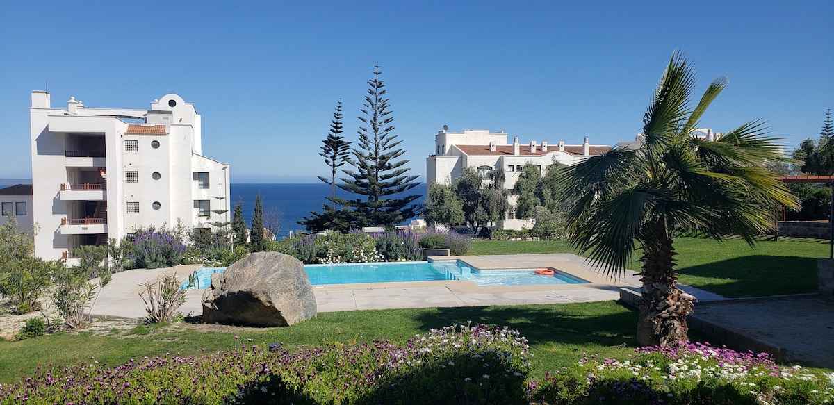 Exquisito departamento con jardín y vista al mar