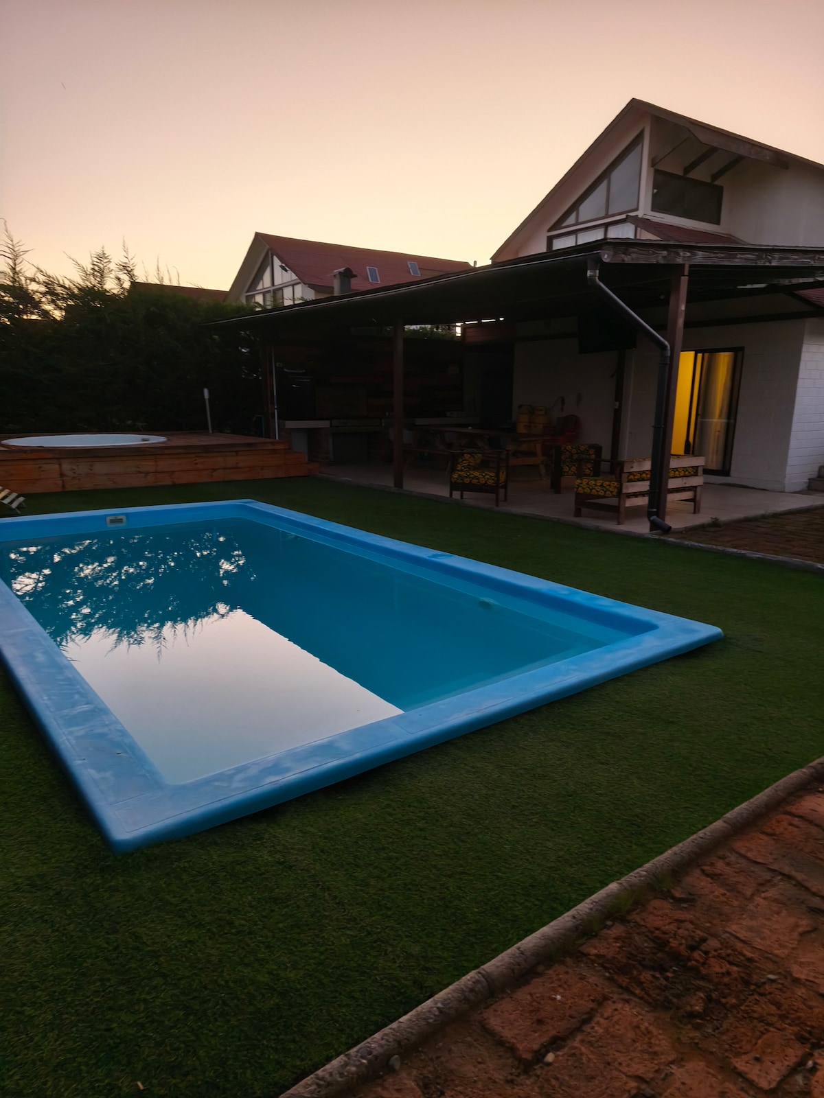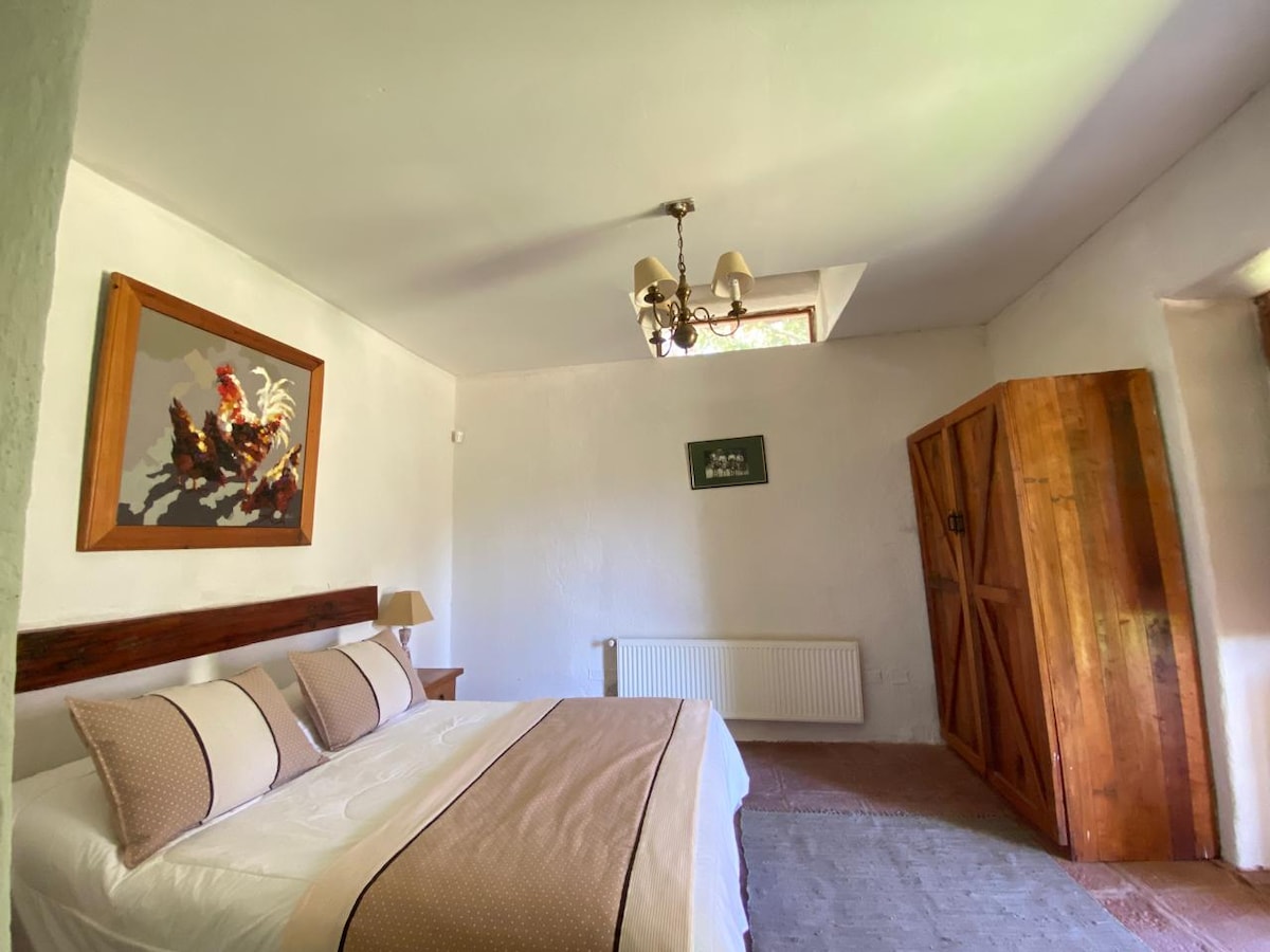 Bienvenidos a nuestra encantadora casa de campo para un grupo de hasta 5 personas, que es parte de un acogedor hospedaje familiar. Rodeada de hermosos jardines, tendrás acceso a piscina y a la opción de tinaja de agua caliente para relajarte bajo las estrellas (con costo adicional). Tanto si vienes a descansar o explorar los alrededores, les garantizamos un ambiente calido y hospitalario. ¡ Los esperamos para que disfruten de una estadía inolvidable en contacto con la naturaleza!