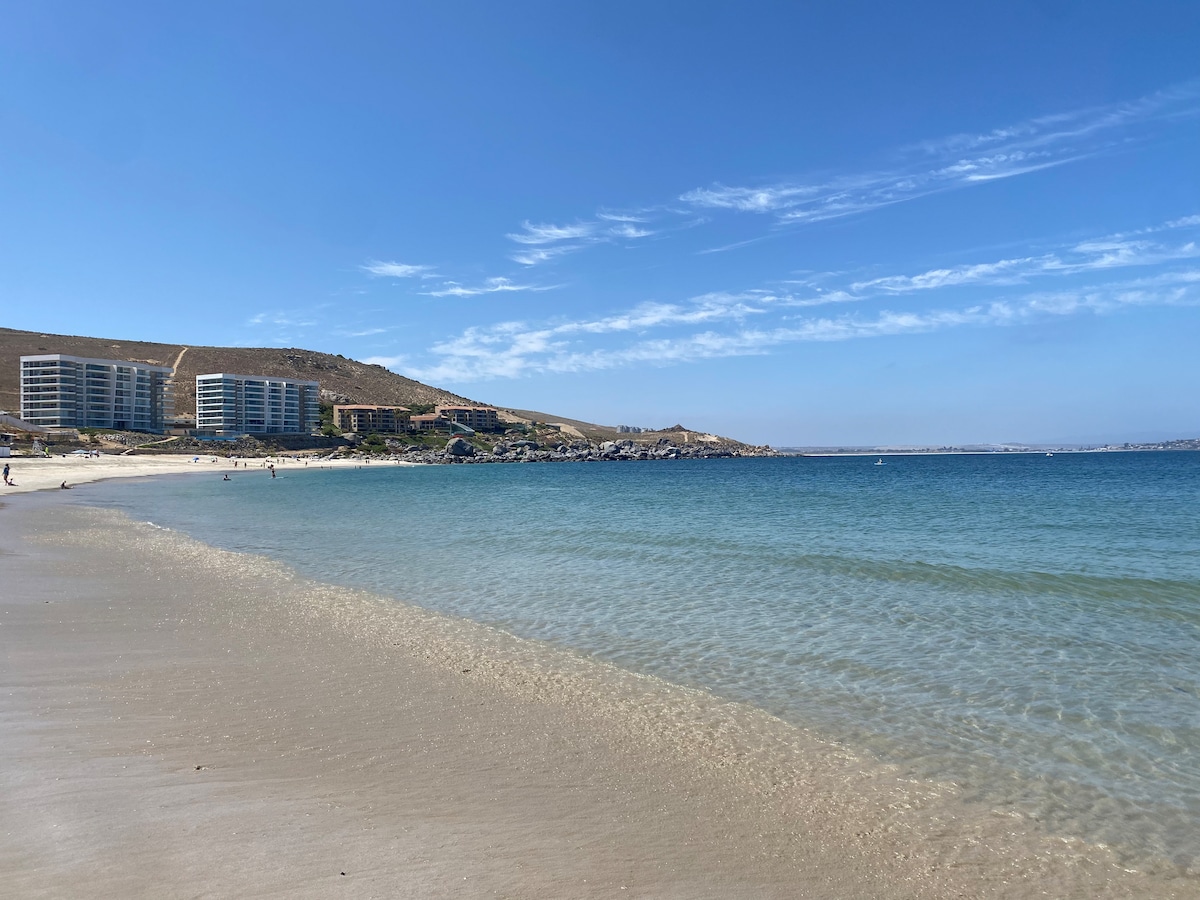 One of the best apartments in all of Puerto Velero. The best location, First Line and First Floor! Newly remodeled with a spectacular view to Tongoy's bay. Direct access to the beach and pools, which are 150 meters away! large garden, terrace, lounge chairs. Spacious and equipped apartment to enjoy an unforgettable vacation. Simply a higher standard than other apartments in Puerto Velero!