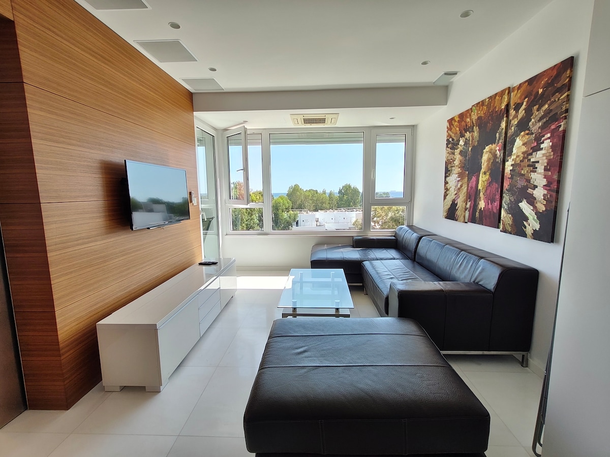 Welcome to The Leonidou Residencies! Enjoy a stylish experience at this brand new centrally-located 3bed penthouse suite! A sophisticated and modernly furnished and decorated city penthouse with a minimal & clean effect. With a huge balcony and views of both mountains and sea with various amenities and perks specifically designed to accommodate every mood.