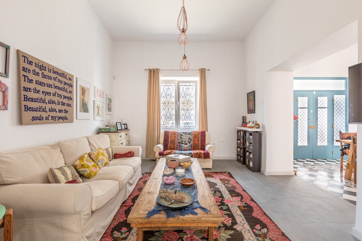 A stone-made over 150 years old house, renovated with love for detail and care to keep its unique character as part of a Cypriot village, located 45 mins Pafos Int. Airport and 60 mins from Larnaca Int. Airport. The Limassol city centre is only just 20 mins away. On the ground-floor you’ll find a very comfortable living space that integrates the living-room with the dining room and the kitchen. On the upper floor, you will find a very comfortable bedroom with a nice veranda.