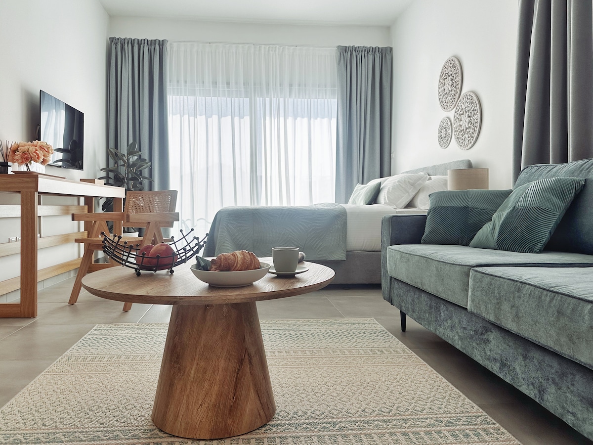 This cozy, newly renovated studio loft in central Limassol offers modern design and comfort for 2 guests. Features a queen bed, fully equipped kitchen with dishwasher, and a large balcony with seating area. Located on a quiet street yet steps from Limassol's best cafes, bars, and shopping district. Just a 10-minute walk to the sea. Ground floor access makes arrival easy. Perfect for couples seeking a peaceful retreat close to all the action.