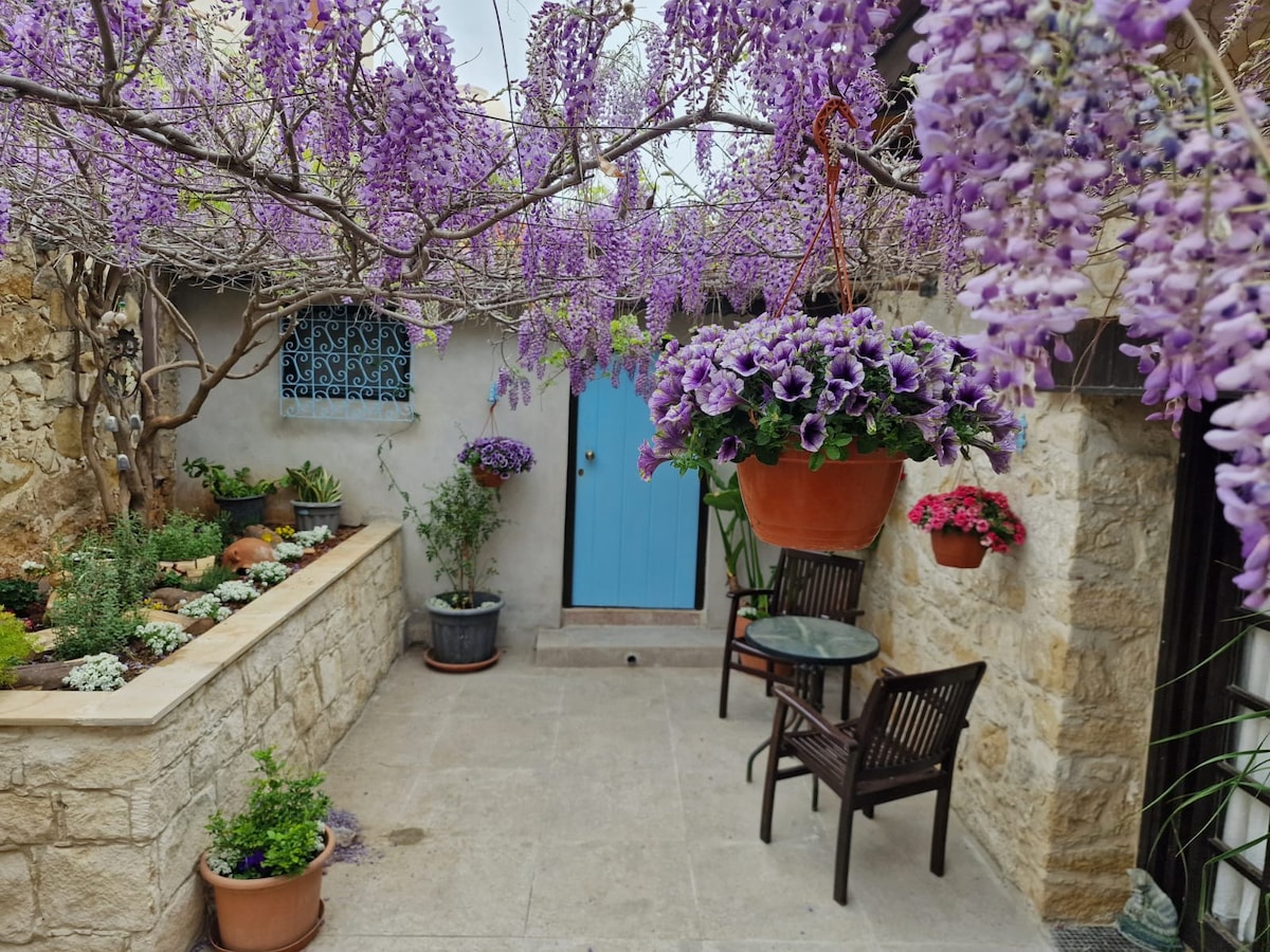 In the old Knights Templar village of Germasoyia in Limassol, lies an old stone house which is full of character and history. The house has 2 separate apartments, this appartment, Kalimera, has a fully equipt kitchen with washing machine, dishwasher, fridge freezer gas hob electric oven which can accommodate 2 to 4 adults, a baby's cot. Pretty and private courtyard garden where you can sit to enjoy its peace and tranquility. The beach is a few minutes car ride, shops, coffee shops, eateries.