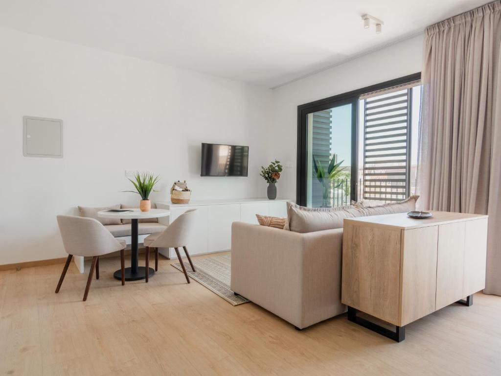 This cozy, newly renovated studio loft in central Limassol offers modern design and comfort for 2 guests. Features a queen bed, fully equipped kitchen with dishwasher, and a large balcony with seating area. Located on a quiet street yet steps from Limassol's best cafes, bars, and shopping district. Just a 10-minute walk to the sea. Ground floor access makes arrival easy. Perfect for couples seeking a peaceful retreat close to all the action.