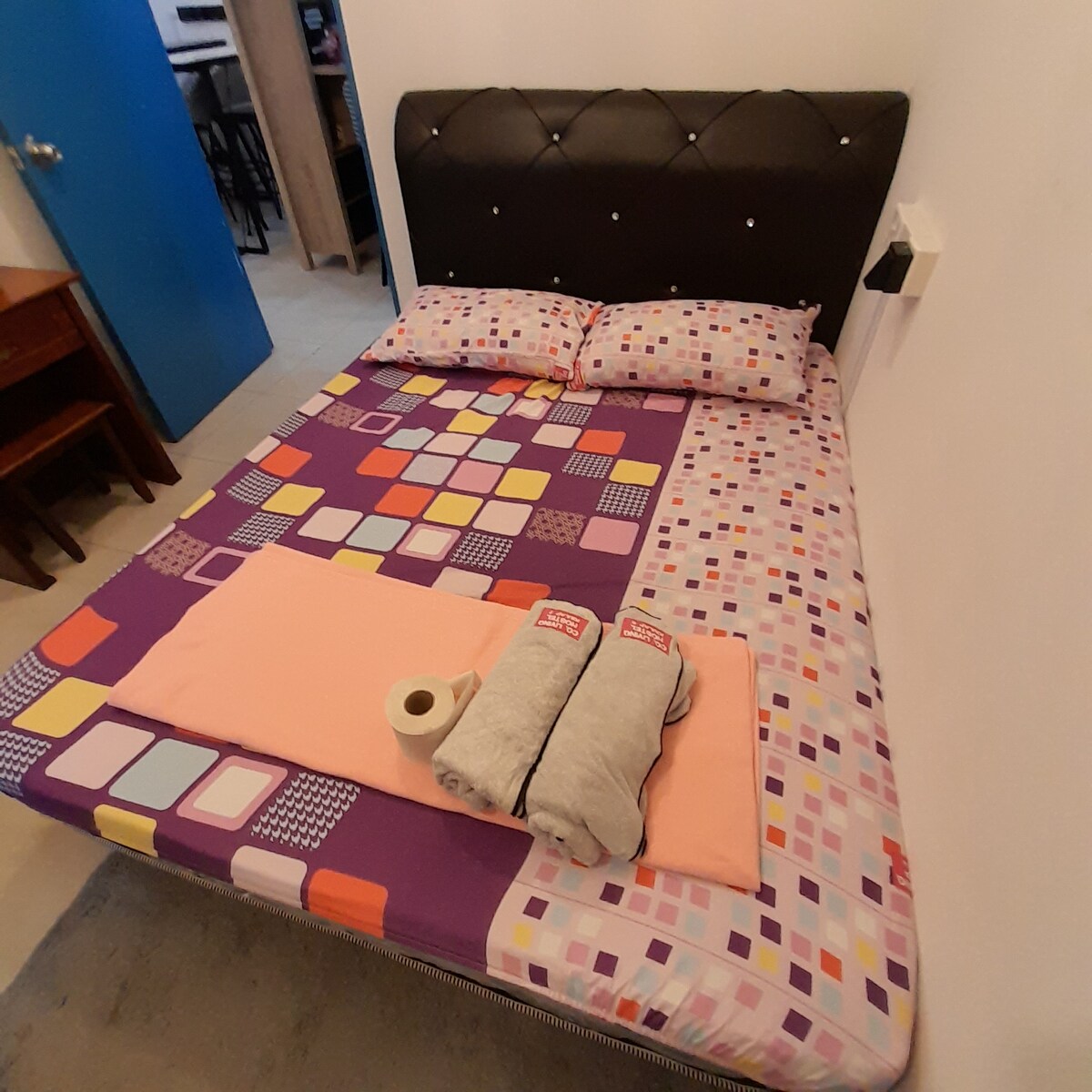 Room 1 is with 1 queen bed and 1 bunkbed. There are 3 beds which can accomodate 4 adults. The room with aircond and window and wardrobe. 2 bathrooms only in the hostel. Sharing bathrooms. Male and female bathroom is separate. Men are not allowed to use ladies bathroom. Strictly No smoking inside property or at the staircase (penalty $300), no pets and no outside shoes in the property. We provide in house slippers for every guests. Fully loaded facilities. Dining area, kitchen, fridge all in.