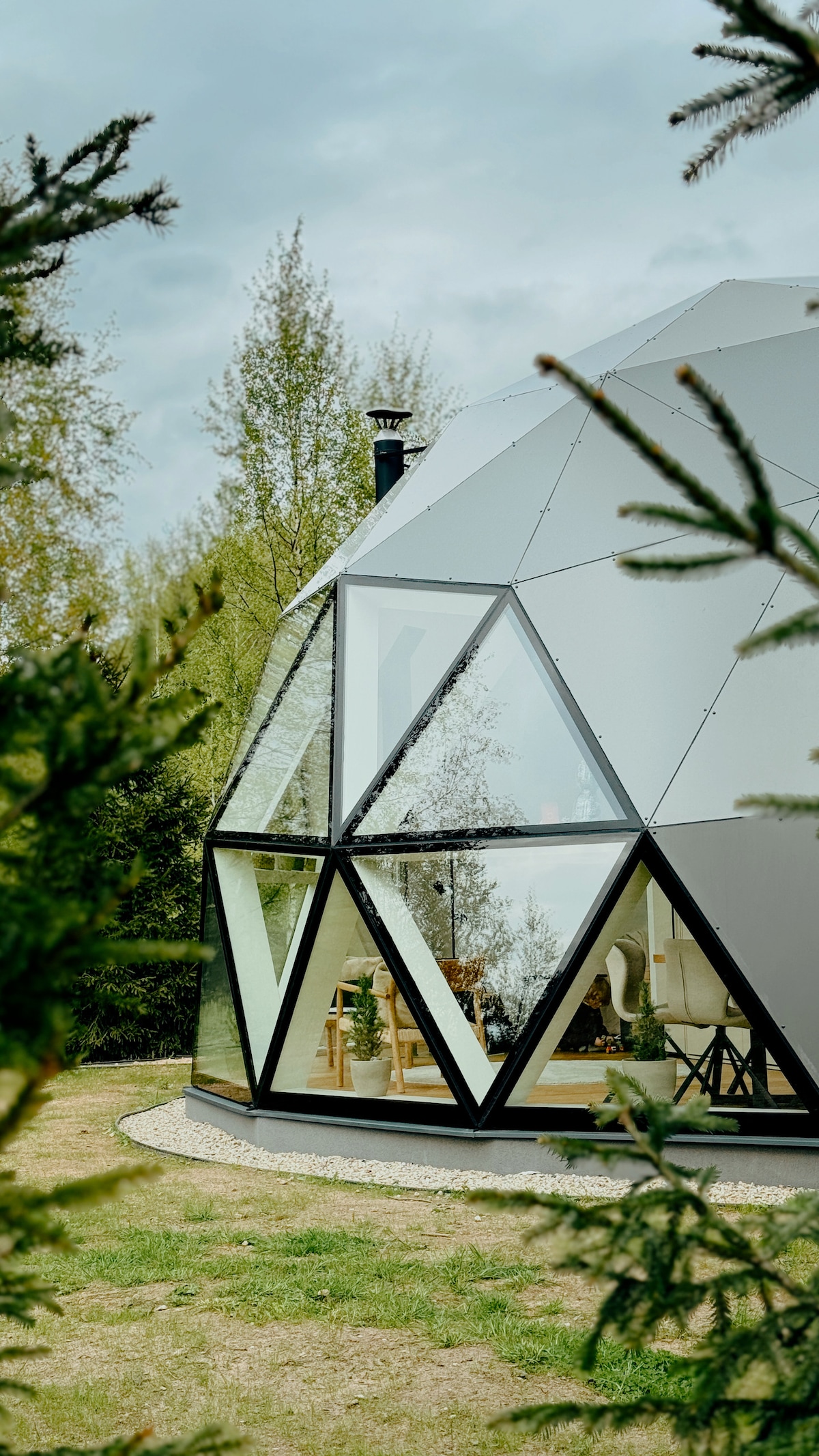 Welcome to our wooden dome house nestled in a lush forest. Its distinctive round design features separate zones that offer both individuality and a sense of togetherness. With lofty ceilings enhancing the spaciousness and soft earth tones complemented by wooden accents, every corner exudes tranquility and comfort. From the expansive panoramic view to the inviting stargazing window, immerse yourself in nature's splendor year-round, fostering cherished moments together in every season.