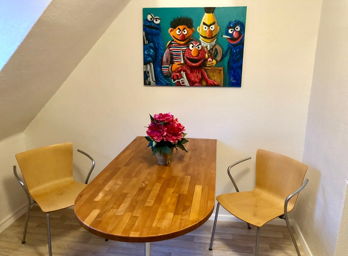 Modern, high-quality furnished 28sqm apartment for two people in the heart of Rüttenscheid. The district is known for its diversity, restaurants and bars and is characterized by its central location. The apartment offers everything you need for a stay in Essen: a comfortable bed (160cmx 200cm), Netflix & Amazon Prime, a fully equipped kitchen and a cozy dining area. The apartment is located to the back out to a green & quiet backyard.